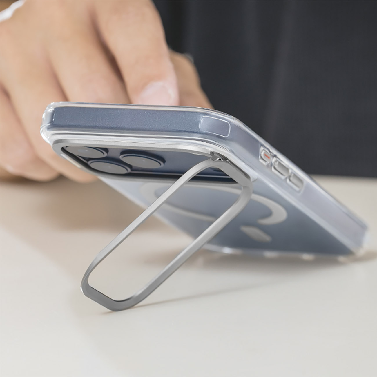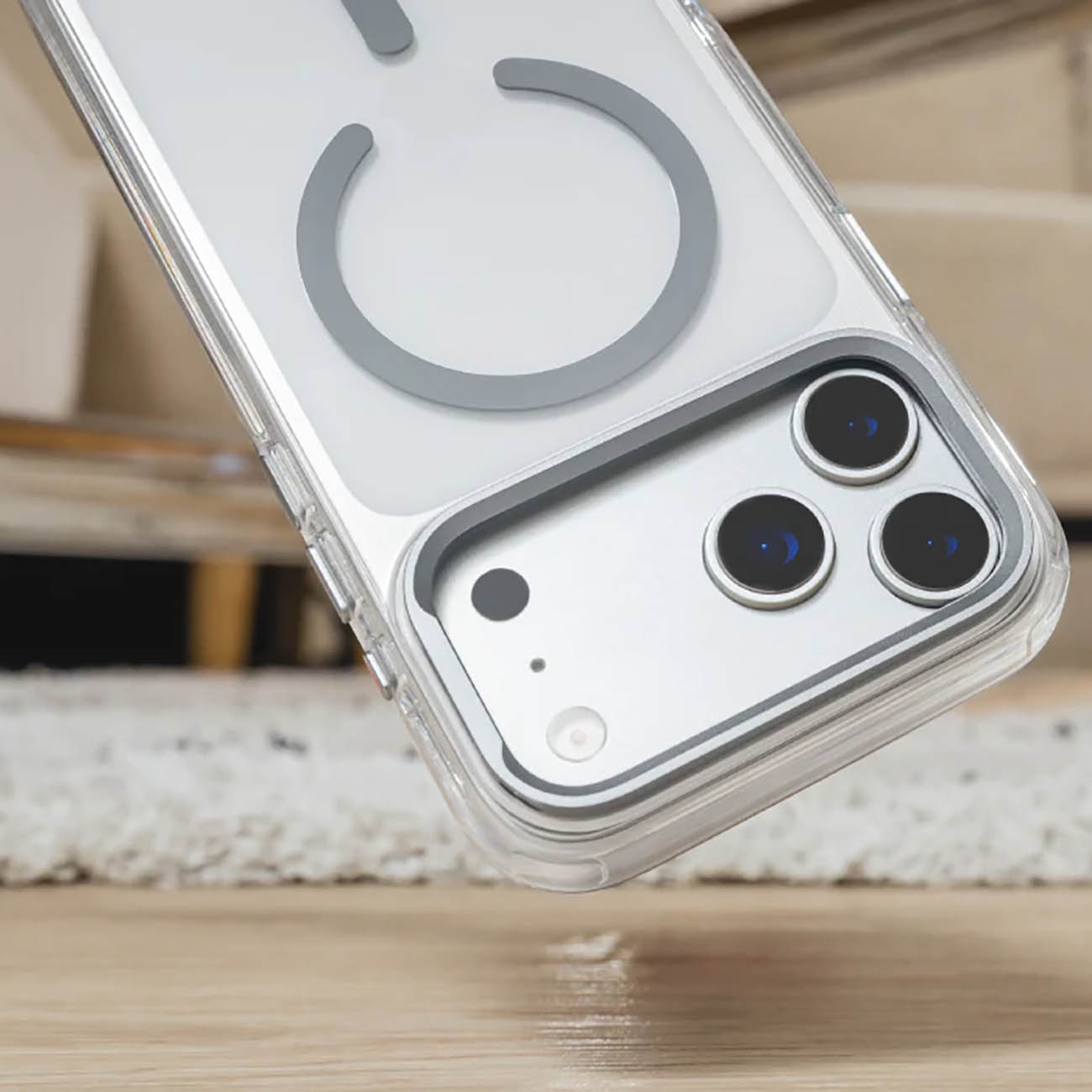 SwitchEasy Case for iPhone 17 Pro / Built-in Stand / MagSafe / Drop-Resistant / Clear & Grey in Qatar
