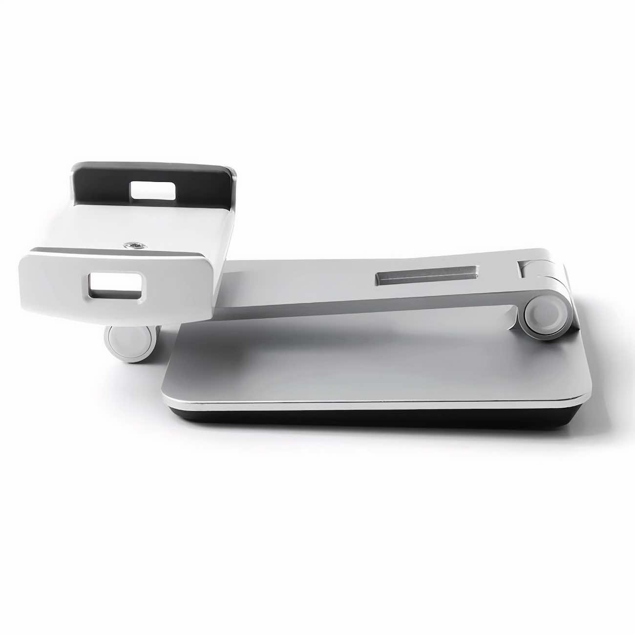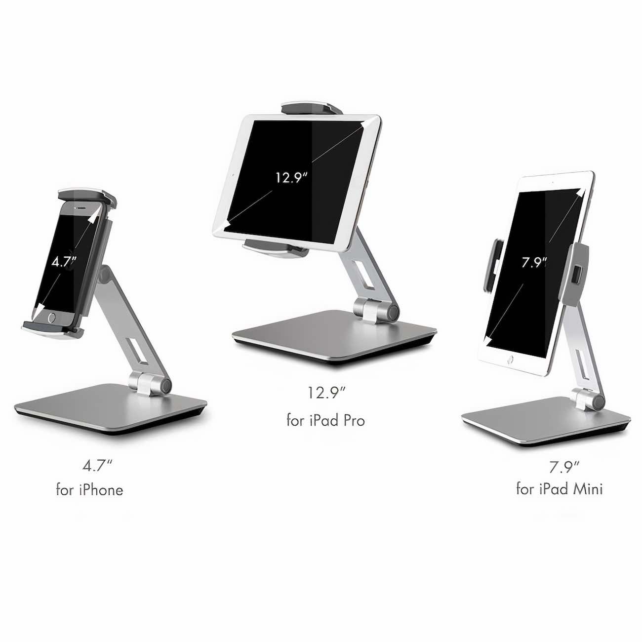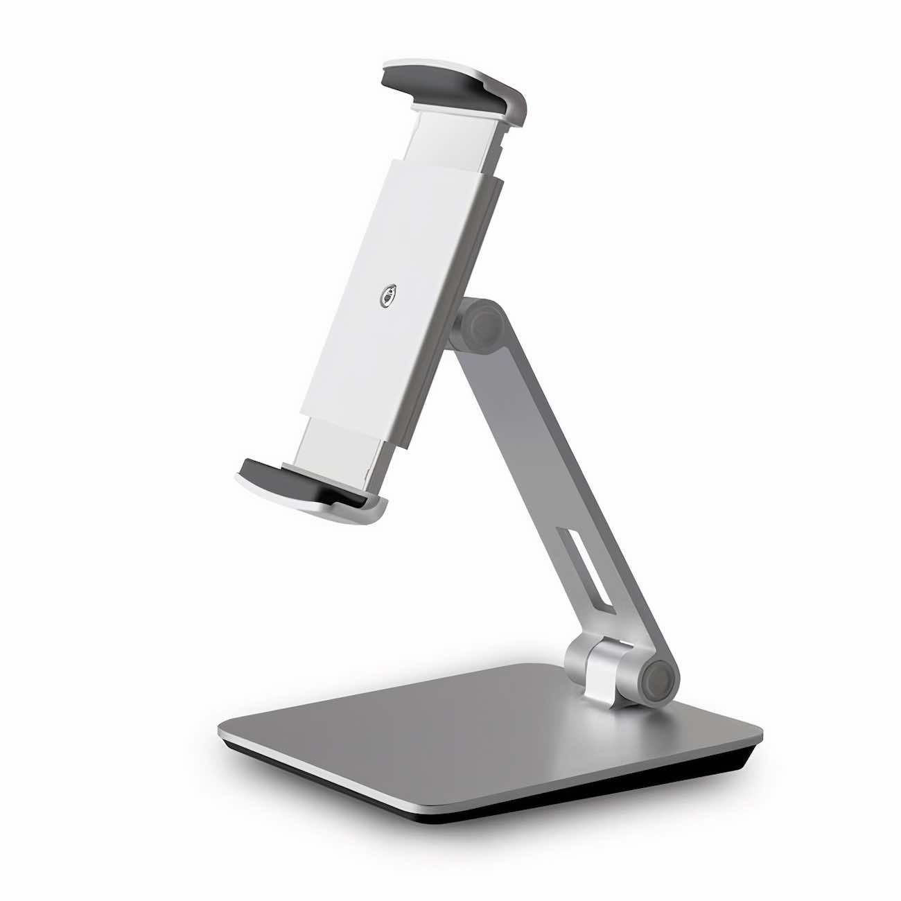 High-quality aluminum desktop stand for phones and tablets.