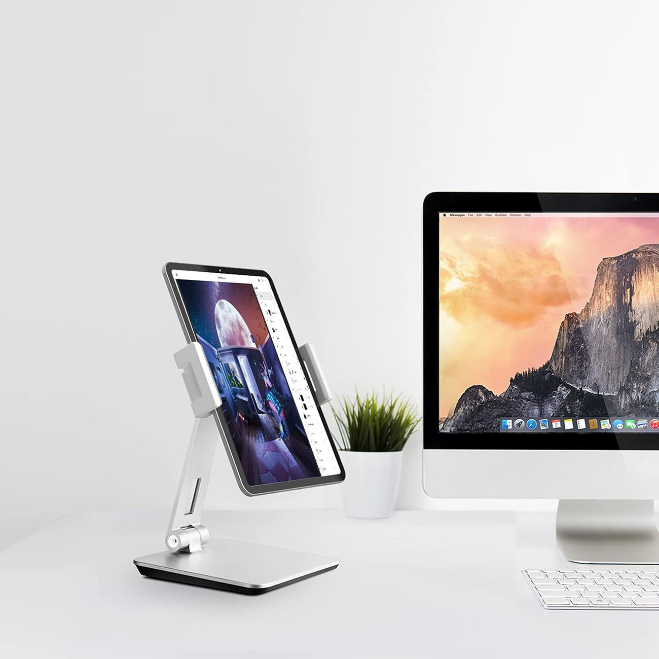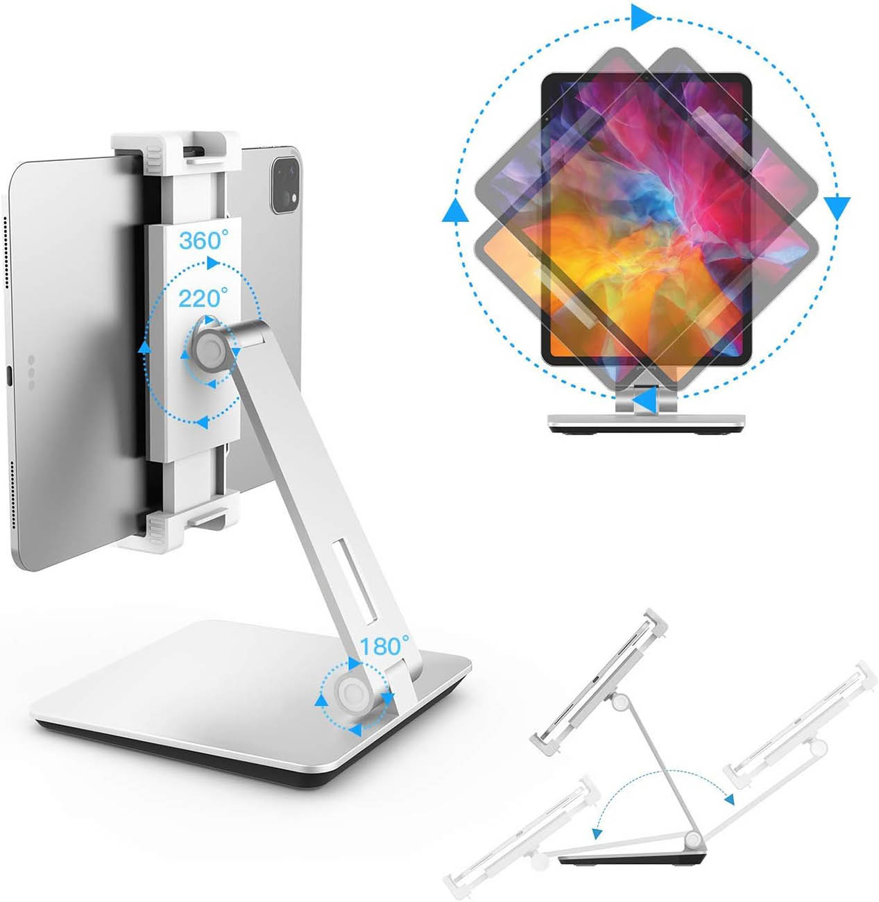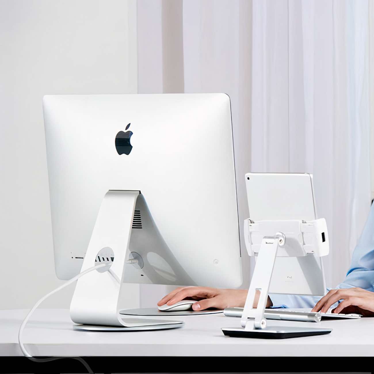 High-quality aluminum desktop stand for phones and tablets.
