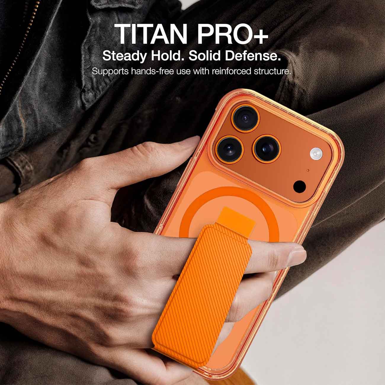 Grip2u Case for iPhone 16 Pro Max / Built-in Grip & Stand / Drop Resistant / Clear