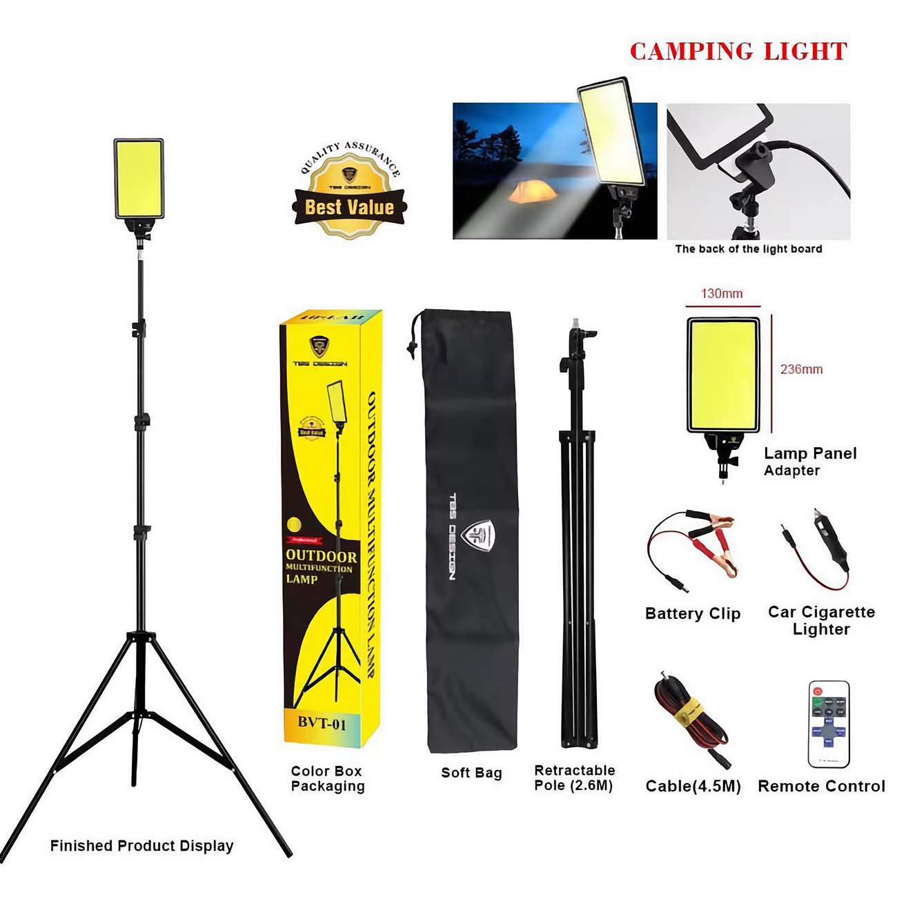 Tobys VIP 11 Max Camping Light / Battery-Operated / with Tripod Stand / Adjustable Height