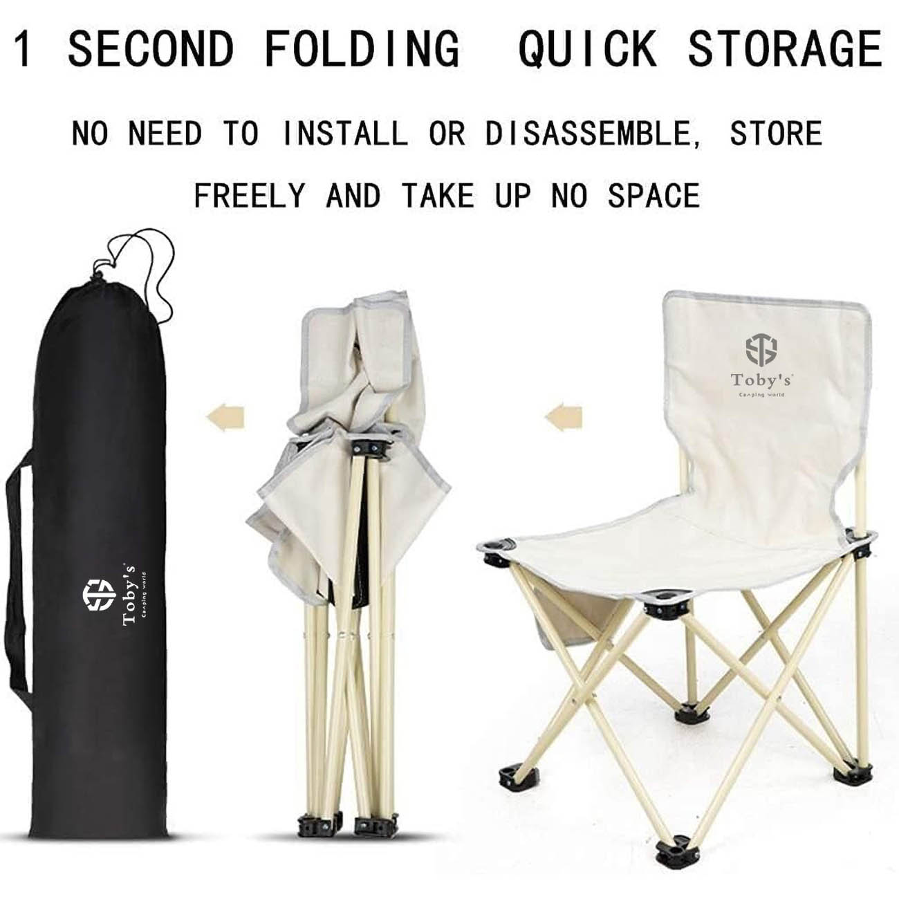 Tobys Camping Chair / Foldable / Built-in Pocket / Supports up to 150 kg