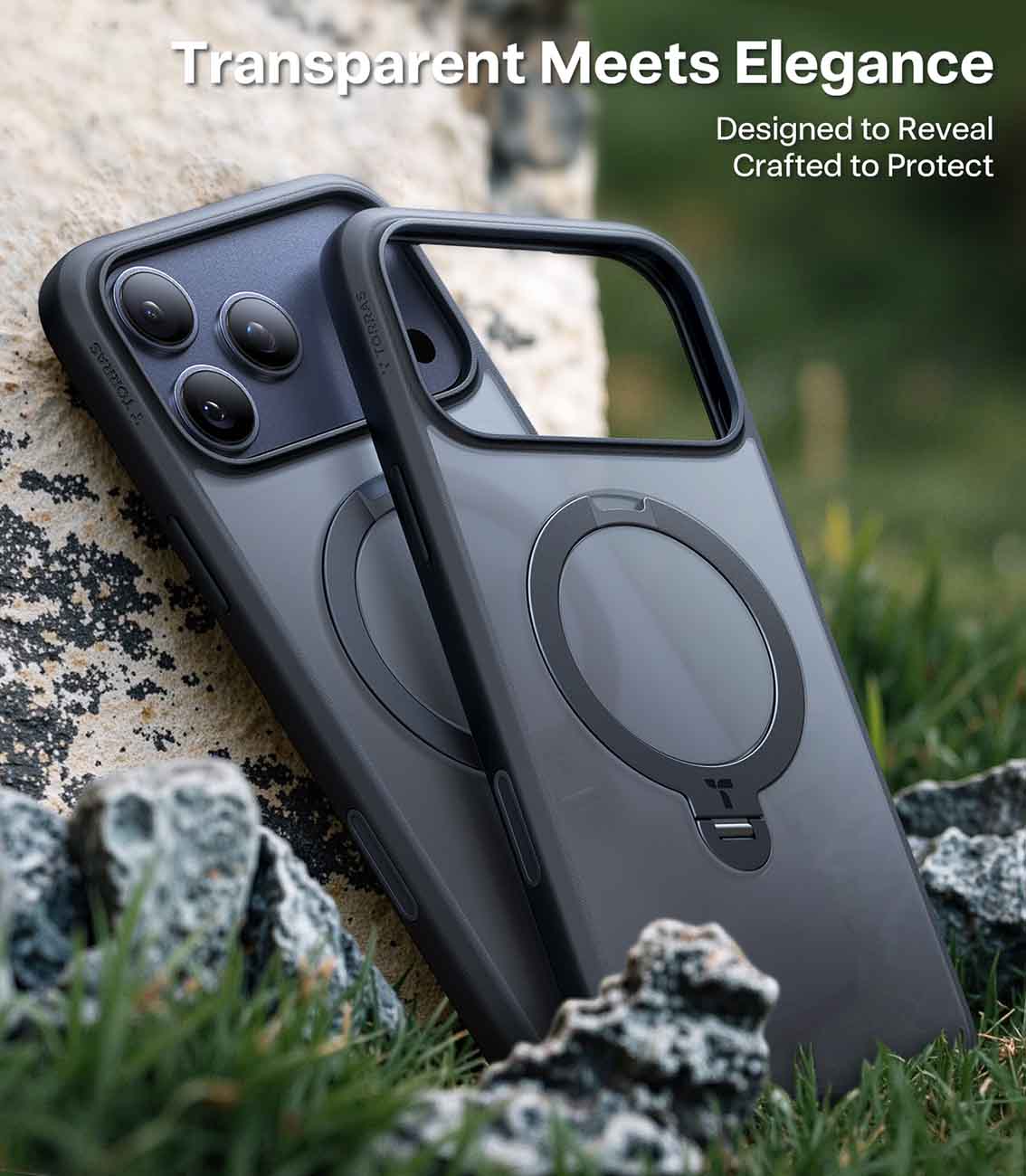 Torras Ostand Pro Case for iPhone 17 Pro Max / MagSafe Compatible / Built-in Grip / Clear
