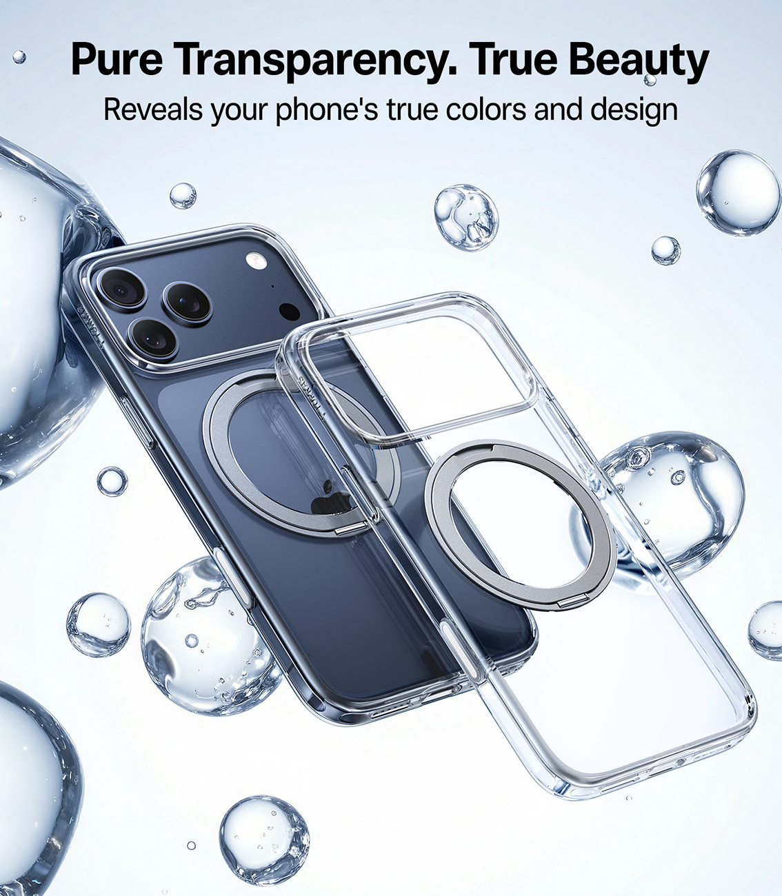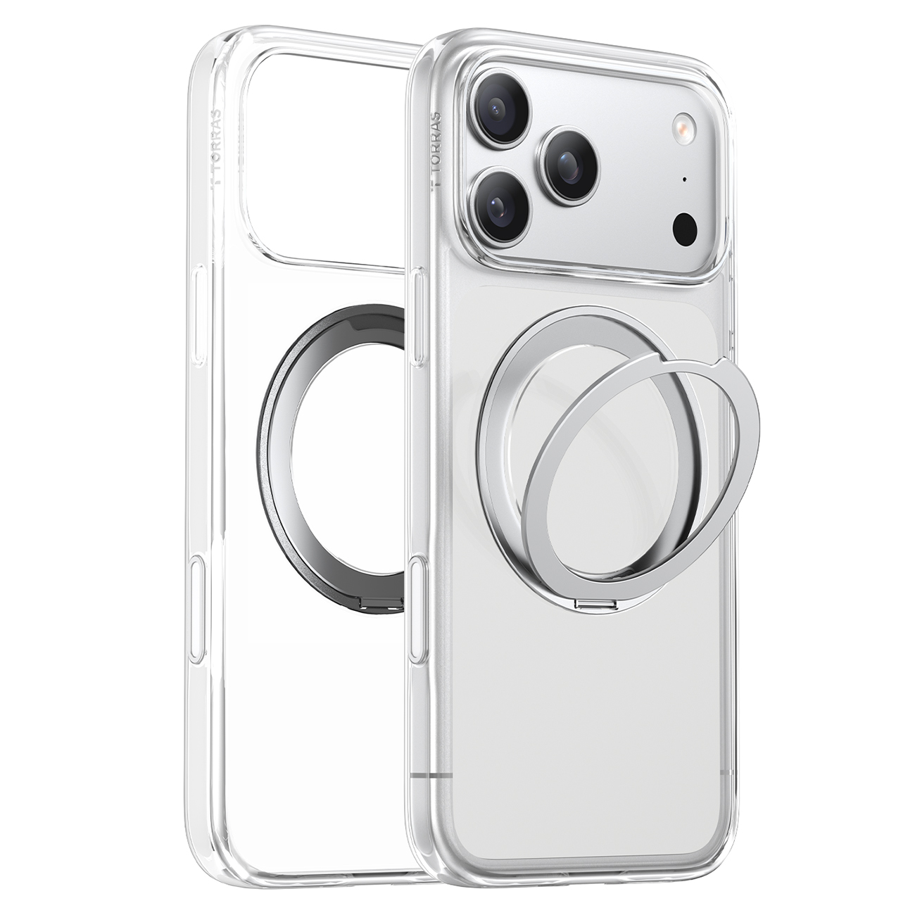 Torras Ostand Spin Case for iPhone 17 Pro / MagSafe Compatible / Built-in Grip / Clear