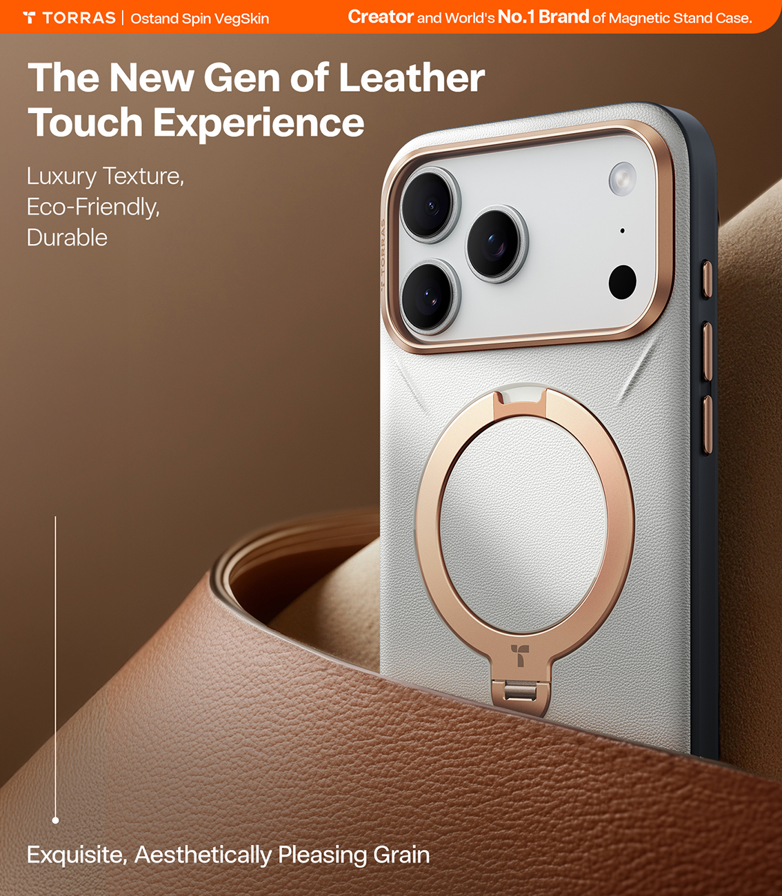 Torras Case for iPhone 17 Pro Max / MagSafe Compatible / Built-in Grip / Premium Leather / Orange