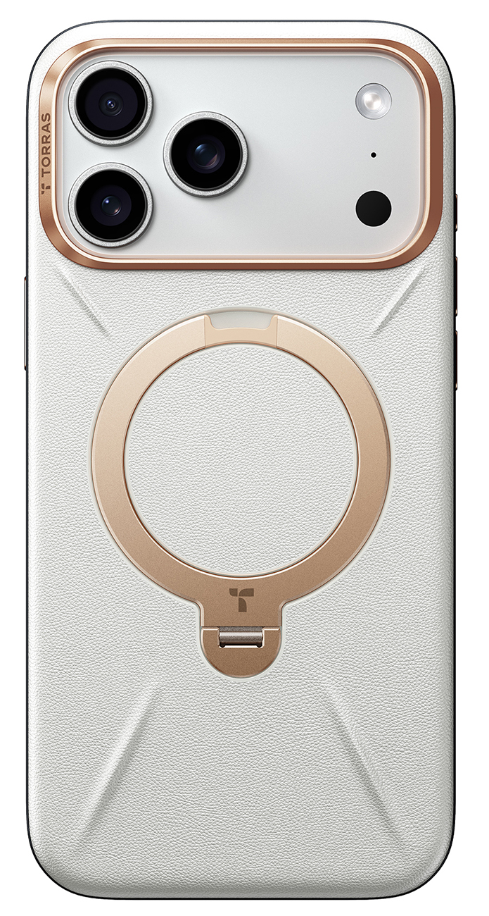 Torras Case for iPhone 17 Pro / MagSafe Compatible / Built-in Grip / Premium Leather / Pearl Grey
