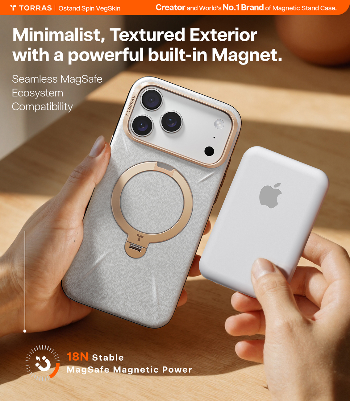 Torras Case for iPhone 17 Pro / MagSafe Compatible / Built-in Grip / Premium Leather / Orange