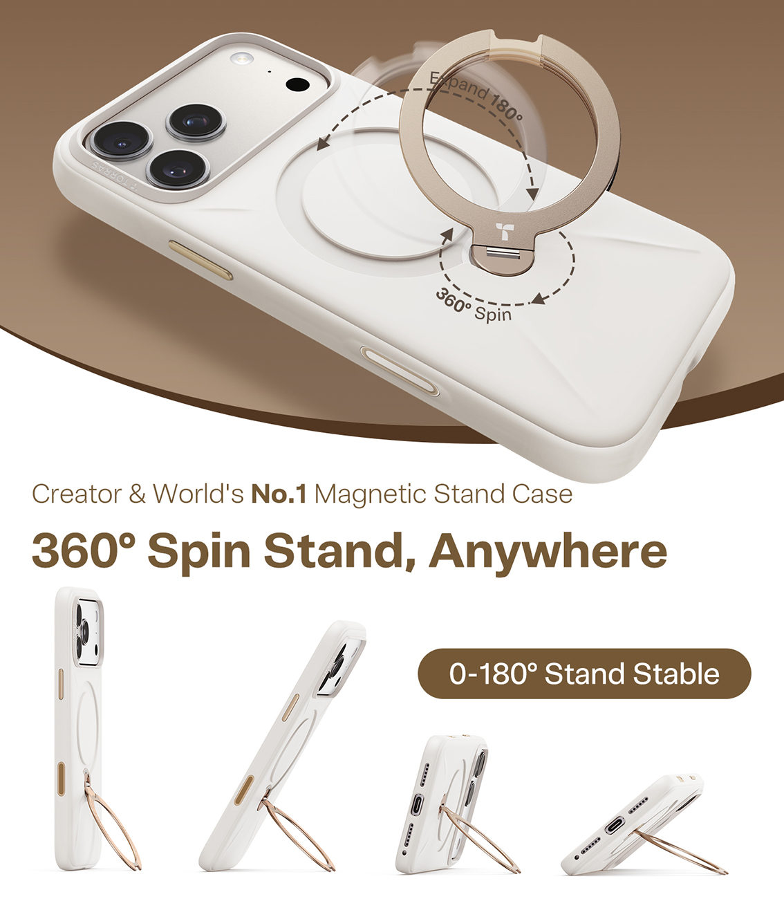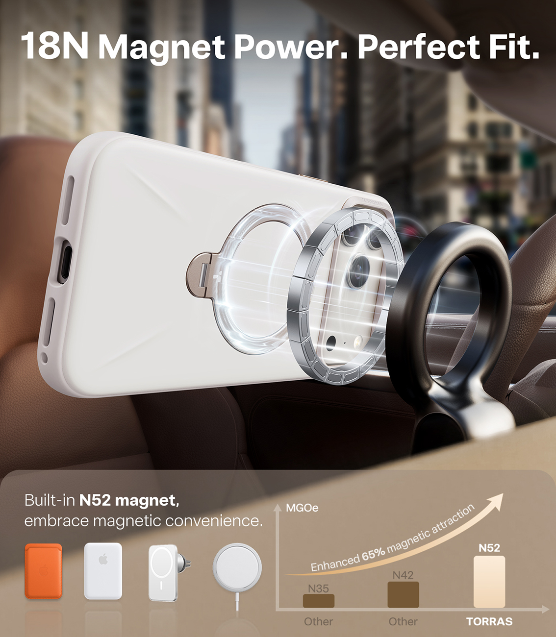 Torras Case for iPhone 17 Pro / MagSafe Compatible / Built-in Grip / Premium Leather / Pearl Grey