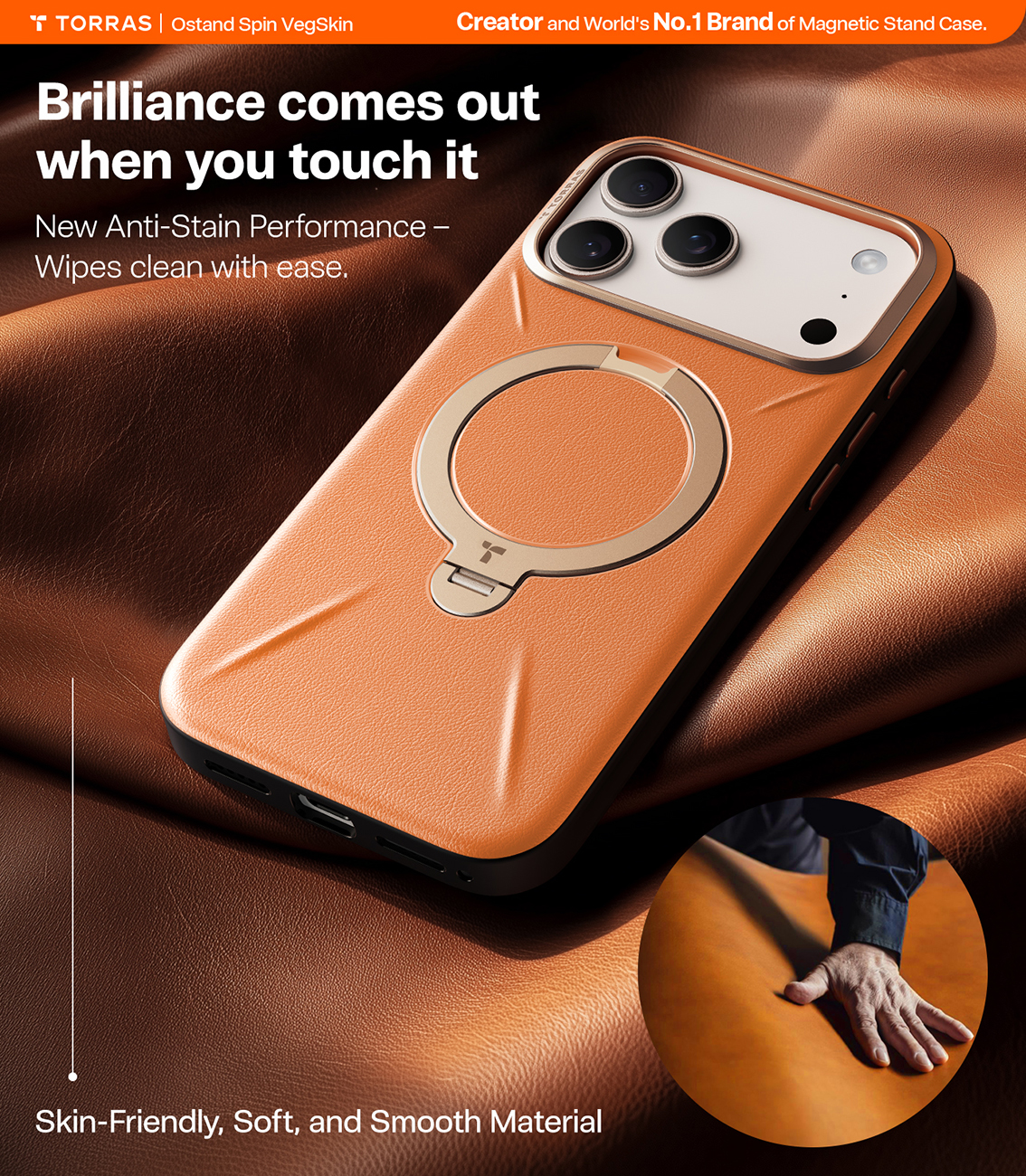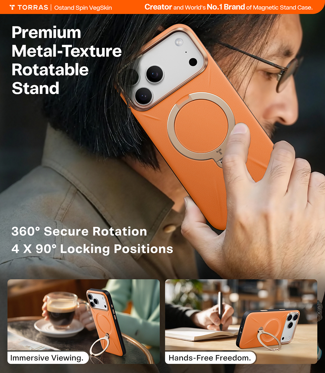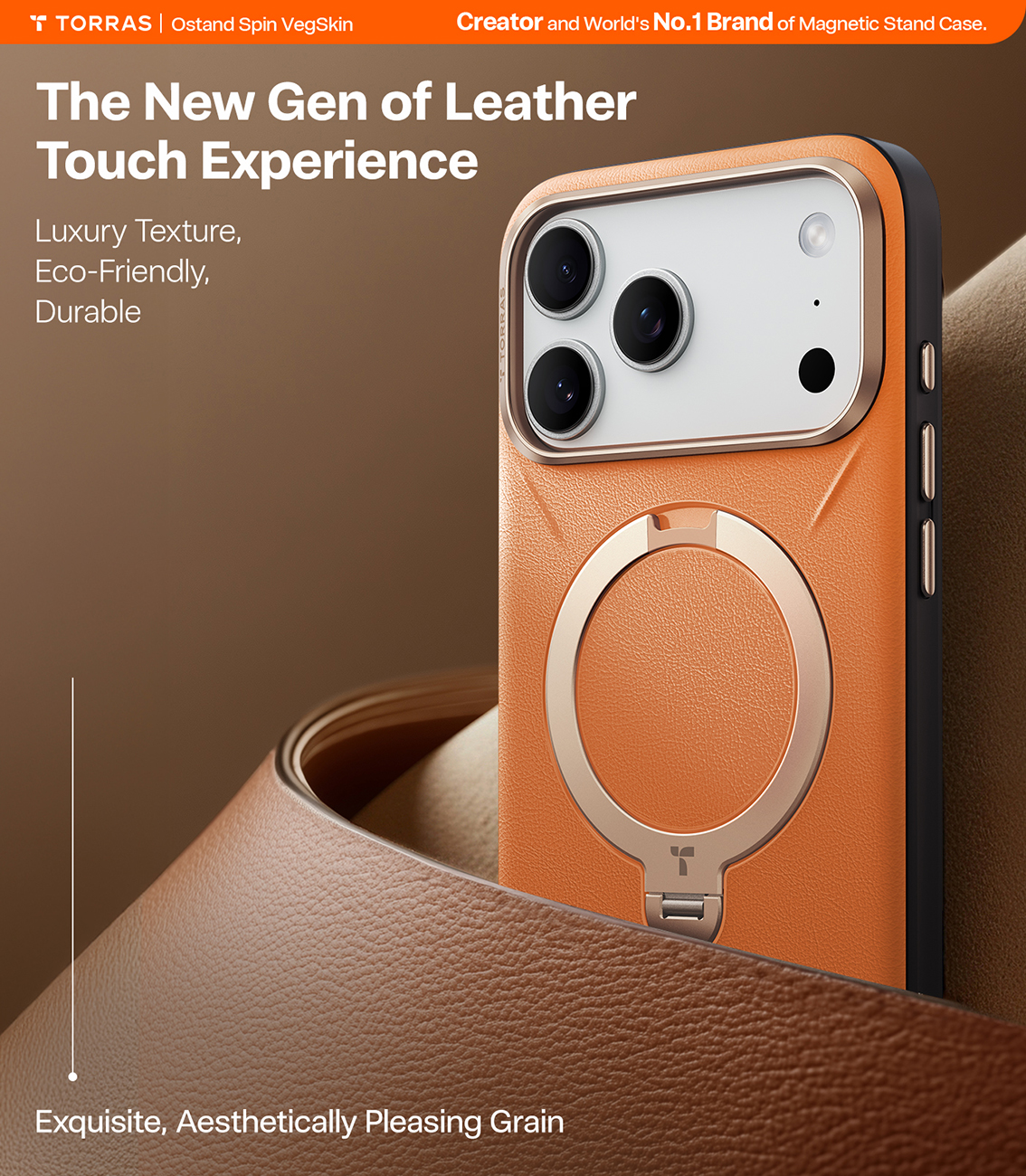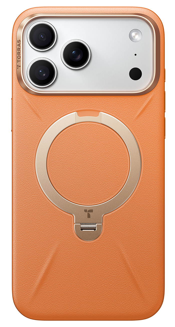 Torras Case for iPhone 17 Pro / MagSafe Compatible / Built-in Grip / Premium Leather / Orange