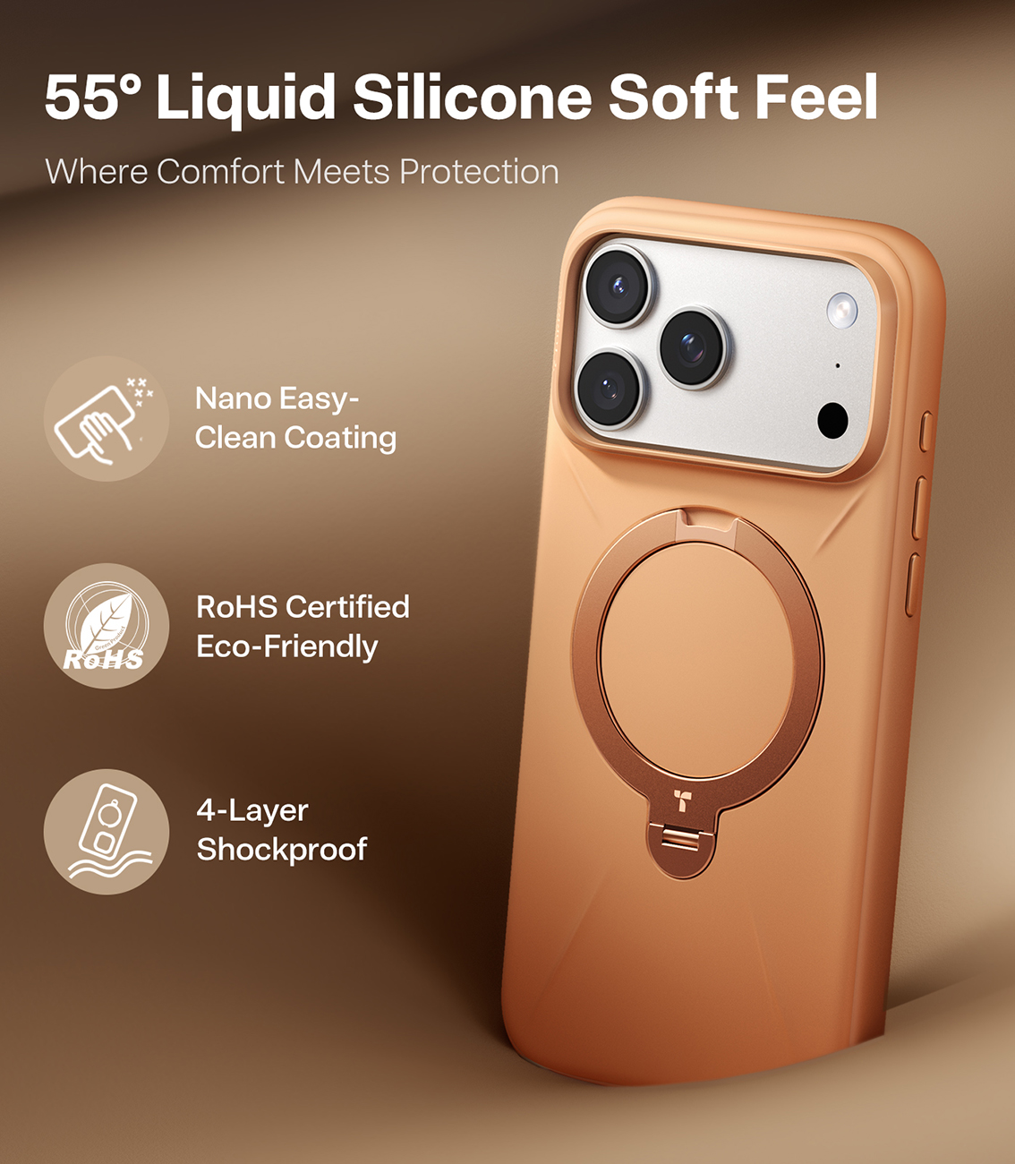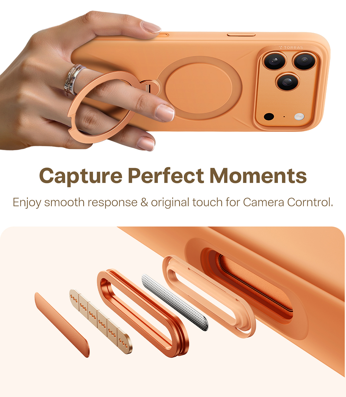 Torras Case for iPhone 17 Pro / MagSafe Compatible / Built-in Grip / Soft Silicone / Orange