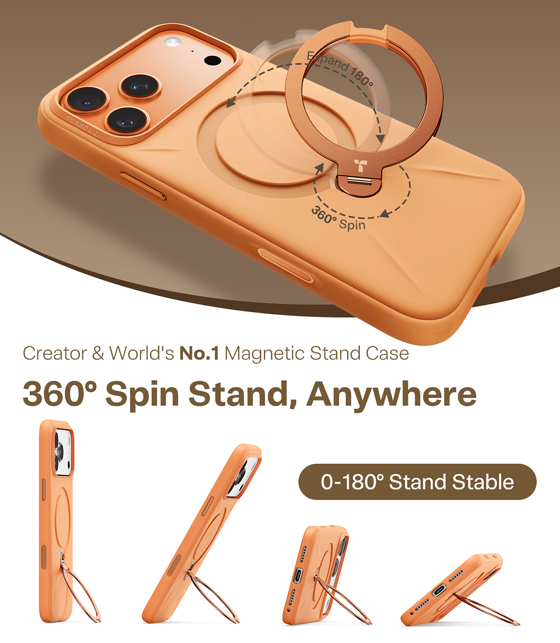 Torras Case for iPhone 17 Pro Max / MagSafe Compatible / Built-in Grip / Premium Leather / Orange
