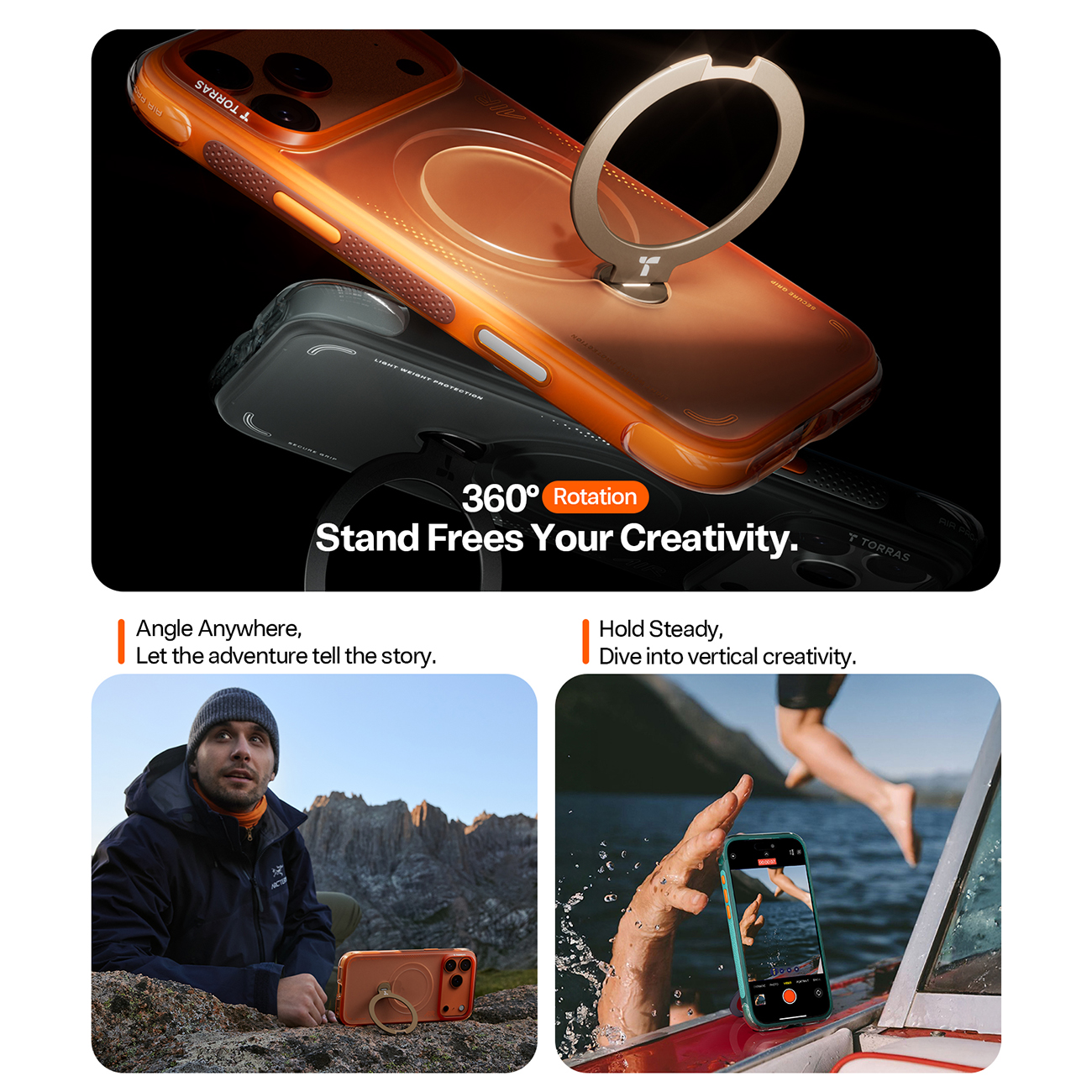 Torras Ostand Case for iPhone 17 Pro / MagSafe Compatible / Built-in Grip / Horizon Orange