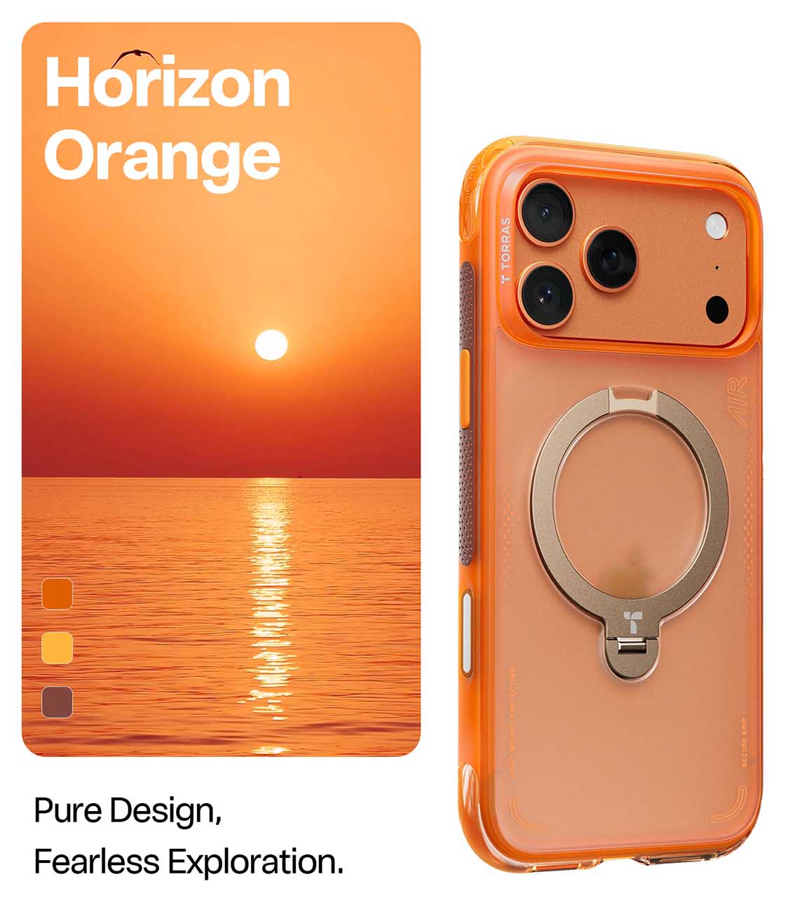 Torras Ostand Case for iPhone 17 Pro / MagSafe Compatible / Built-in Grip / Horizon Orange