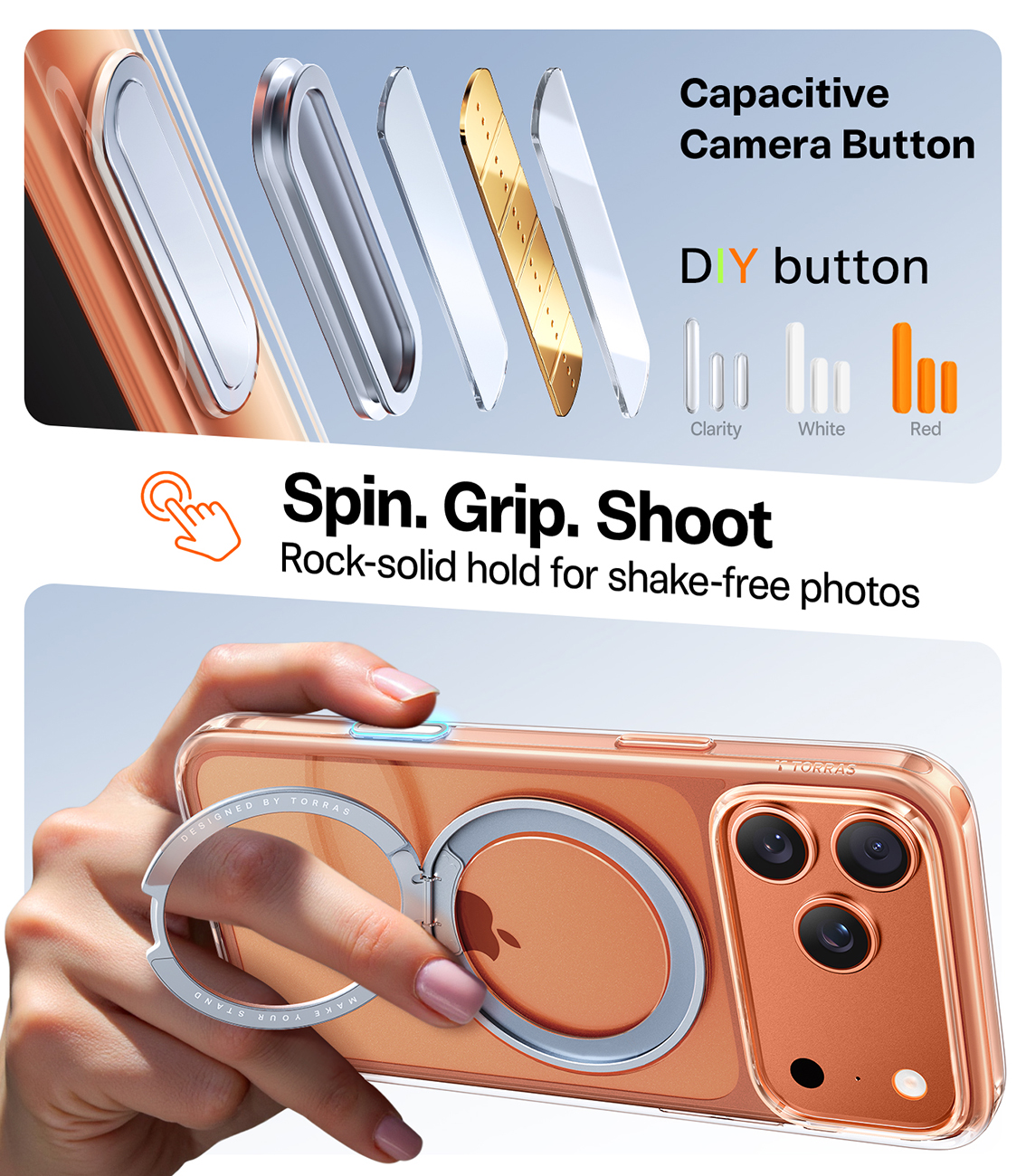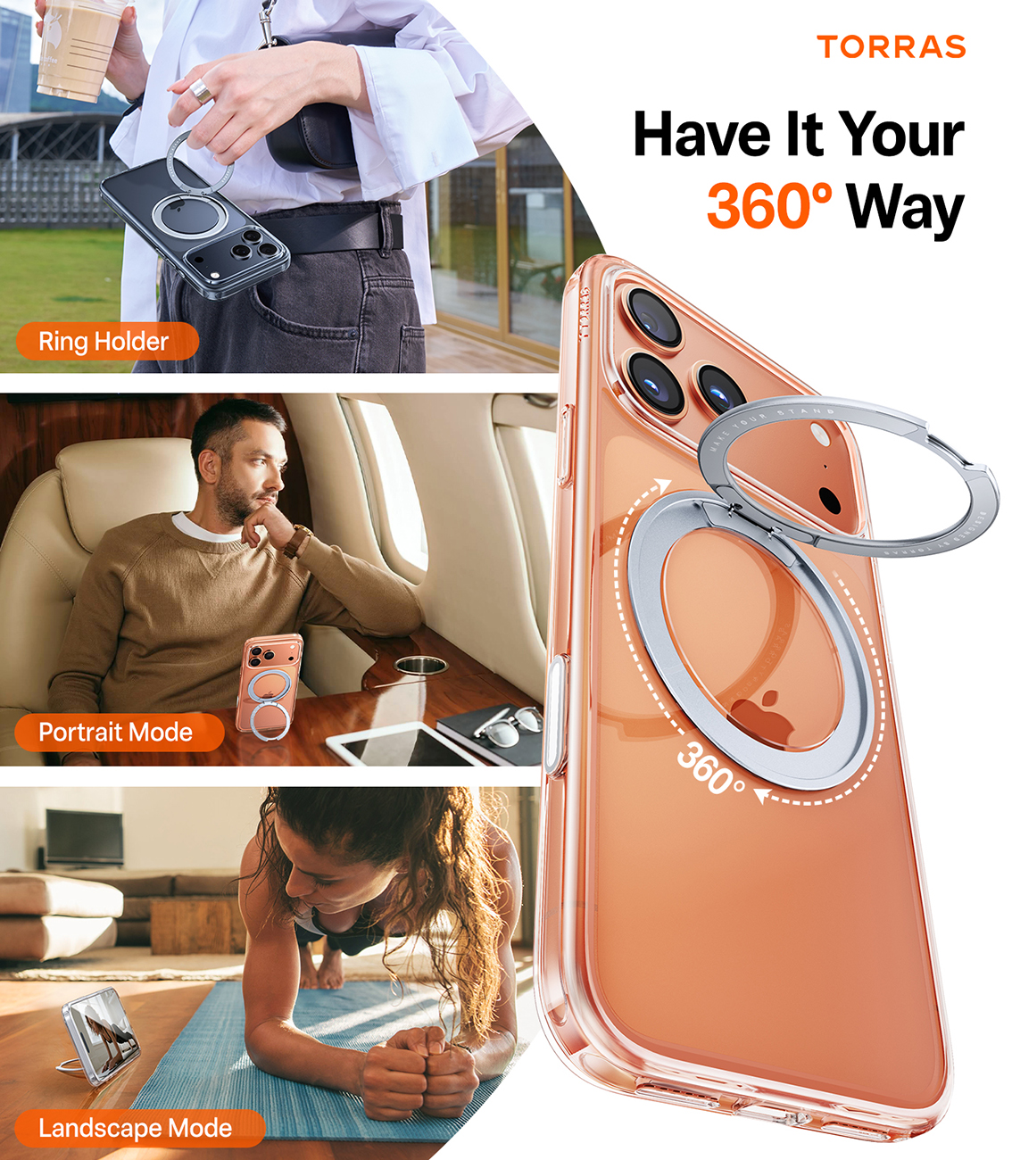 Torras Ostand Spin Case for iPhone 17 Pro Max / MagSafe Compatible / Built-in Grip / Clear