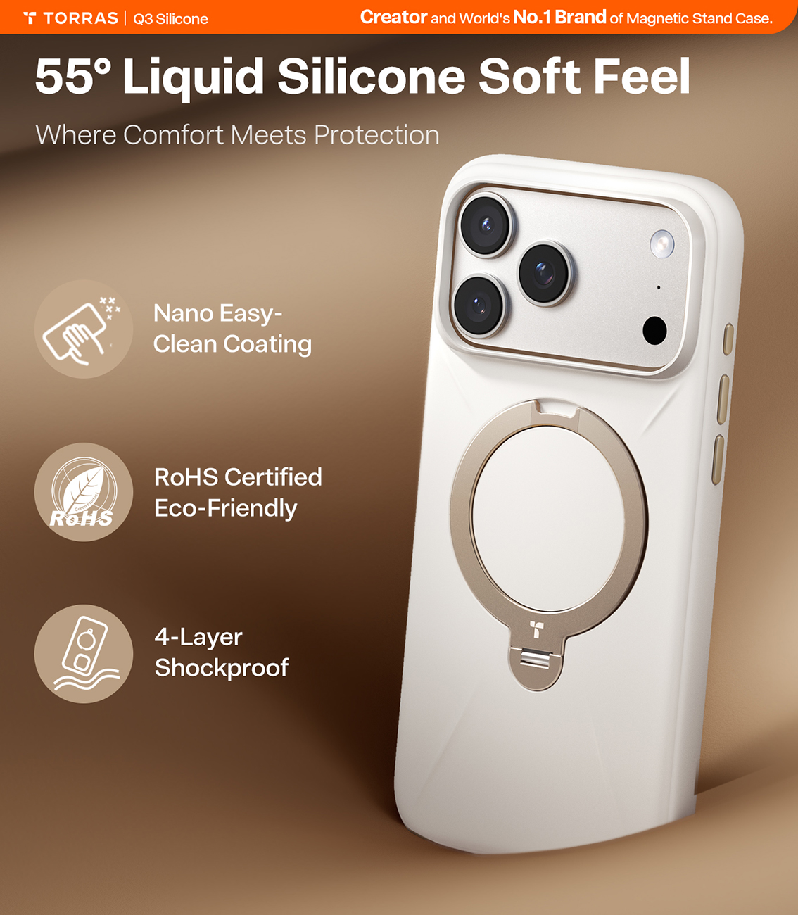 Torras Case for iPhone 17 Pro / MagSafe Compatible / Built-in Grip / Soft Silicone / Baby Powder