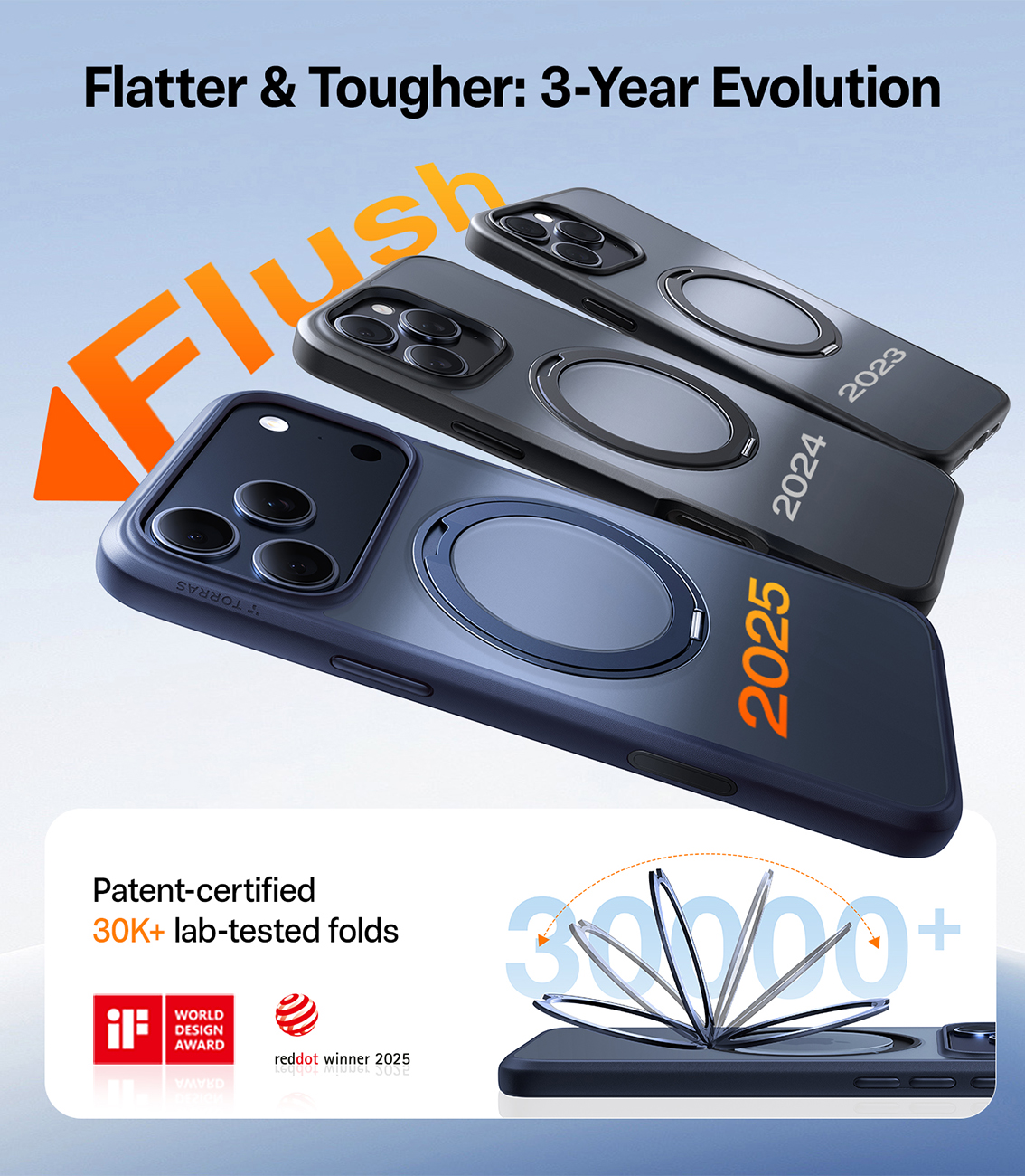 Torras Ostand Pro Case for iPhone 17 Pro / MagSafe Compatible / Built-in Grip / Blue