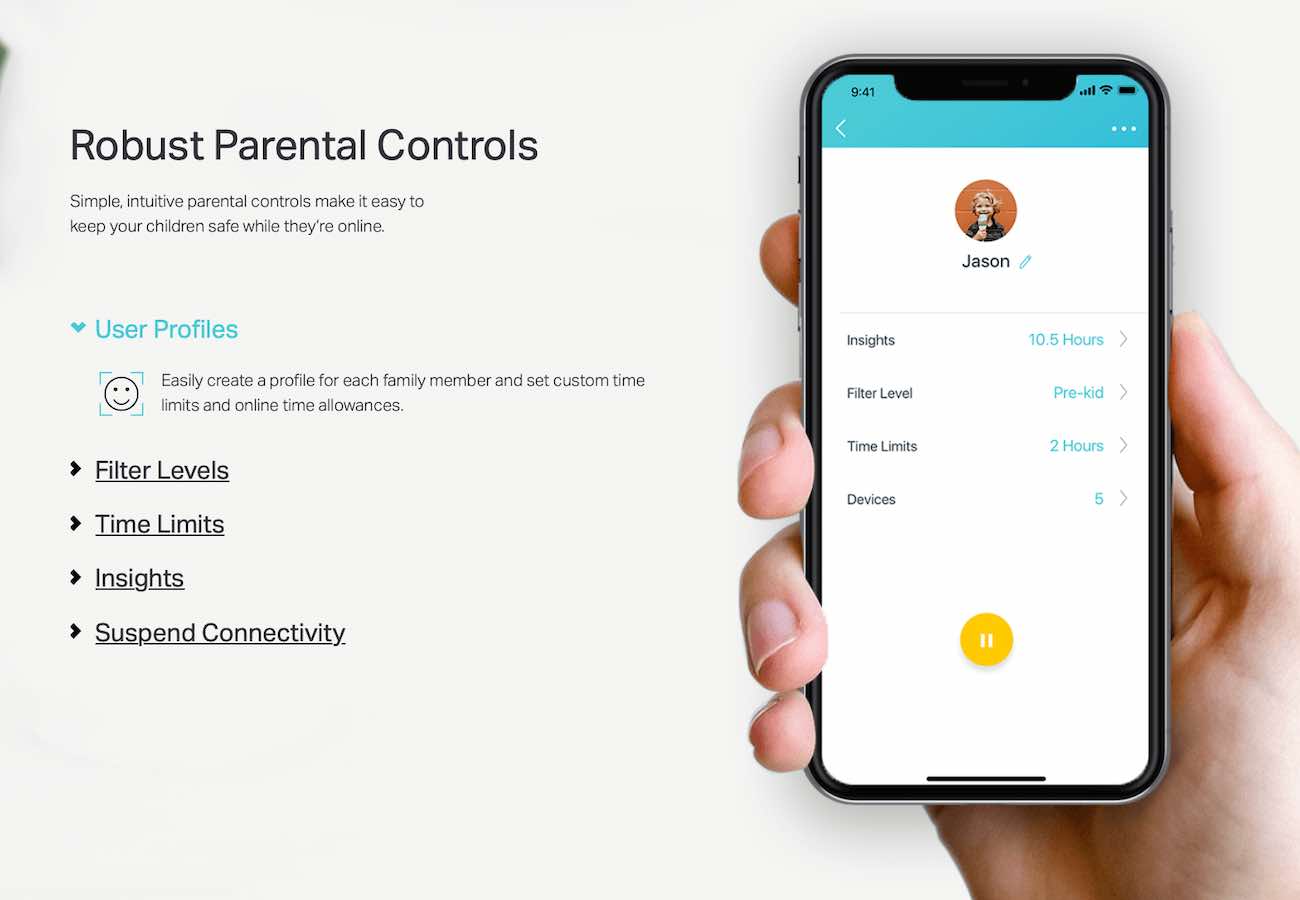 Offers powerful parental controls, allowing you to set internet usage time and block inappropriate websites.
