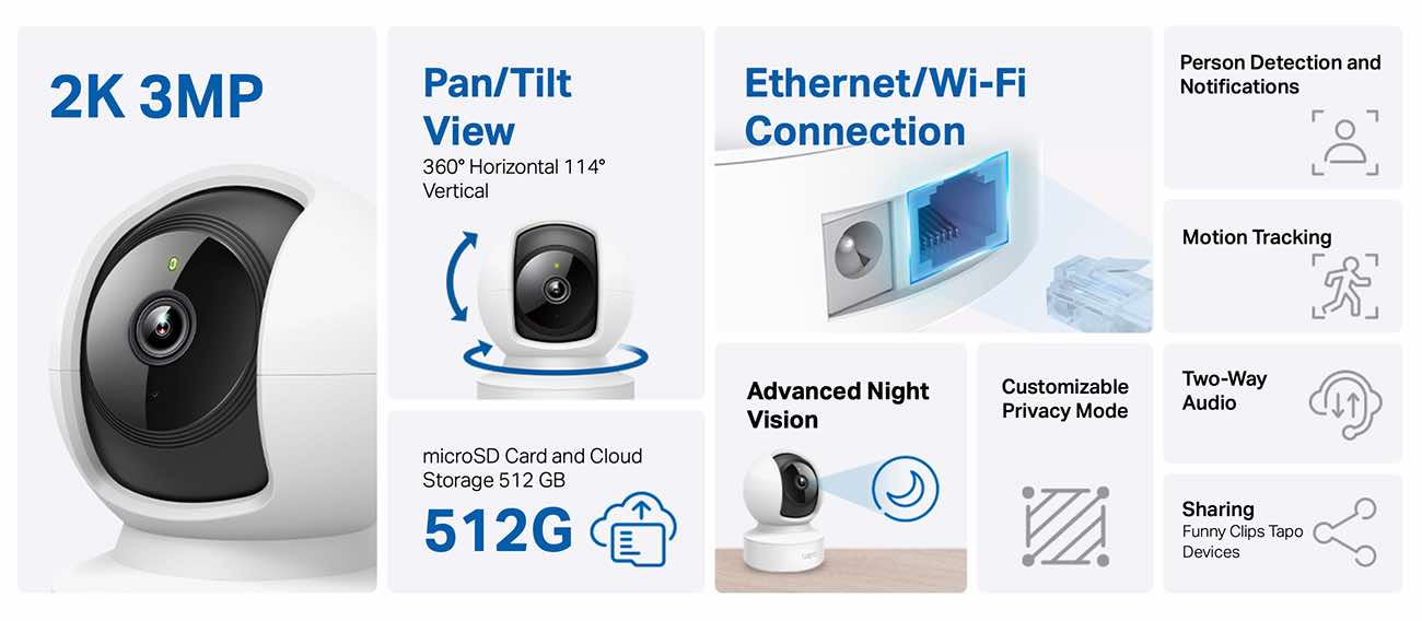 Offers pan and tilt functionality .. providing 360-degree horizontal and 114-degree vertical coverage.