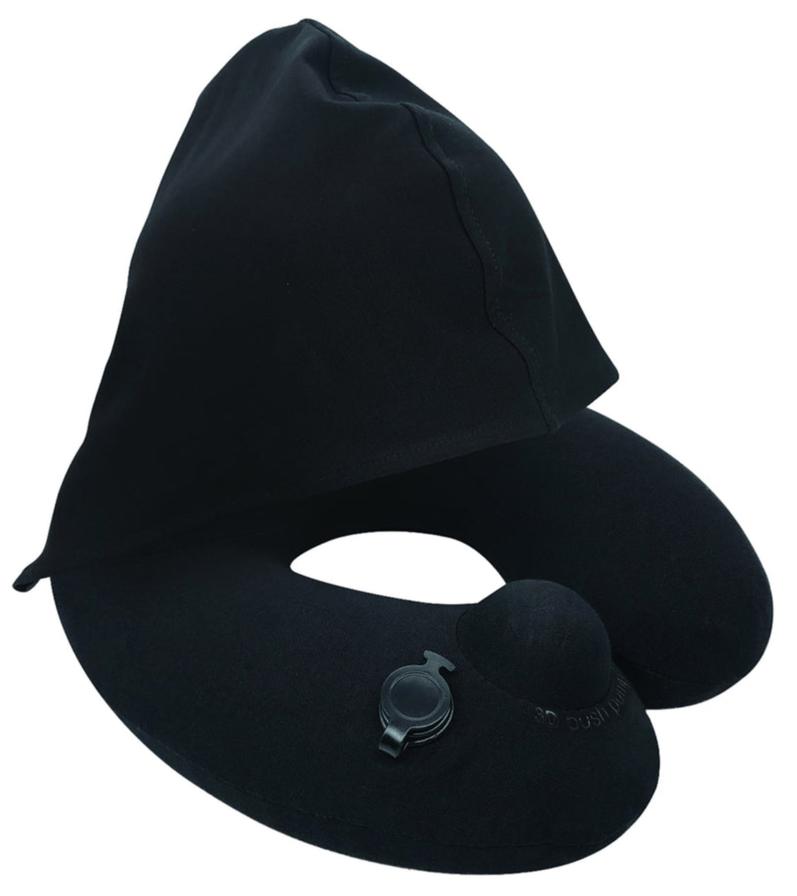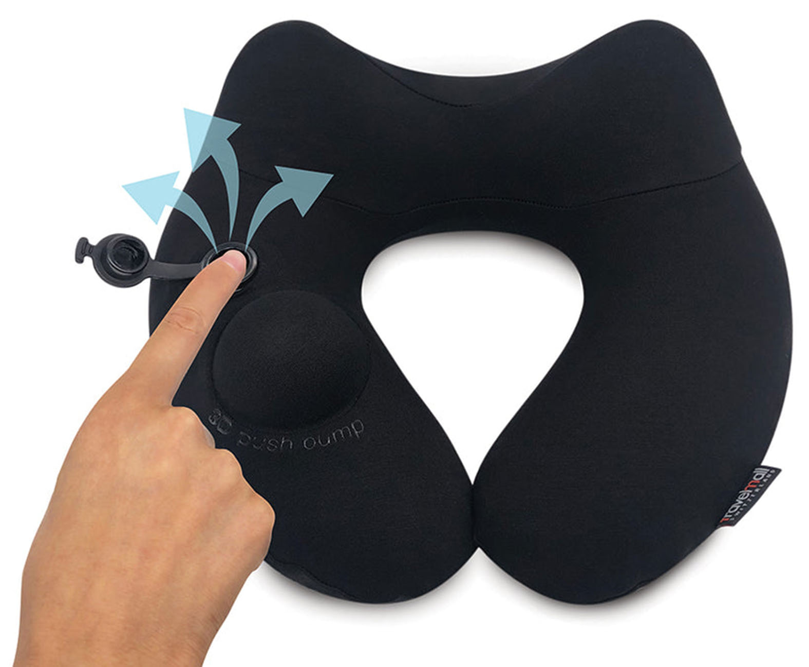 Introducing this neck pillow from Travelmall .. patented for its ability to inflate without the need to blow with your mouth.