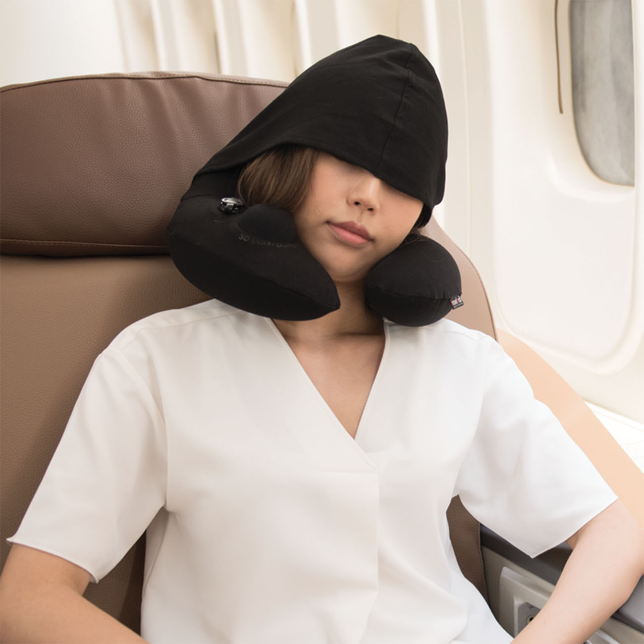 The unique feature of this pillow is its integrated hoodie .. which blocks light from your eyes and helps you sleep better.