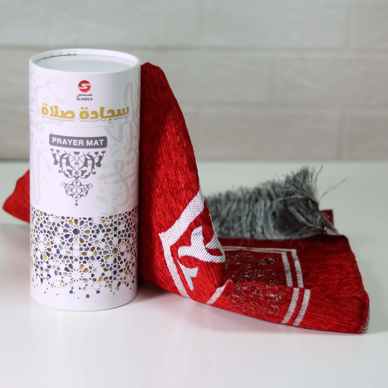 Sundus Prayer Mat / Arabic Calligraphy Design / Soft & Comfortable Fabric / Red
