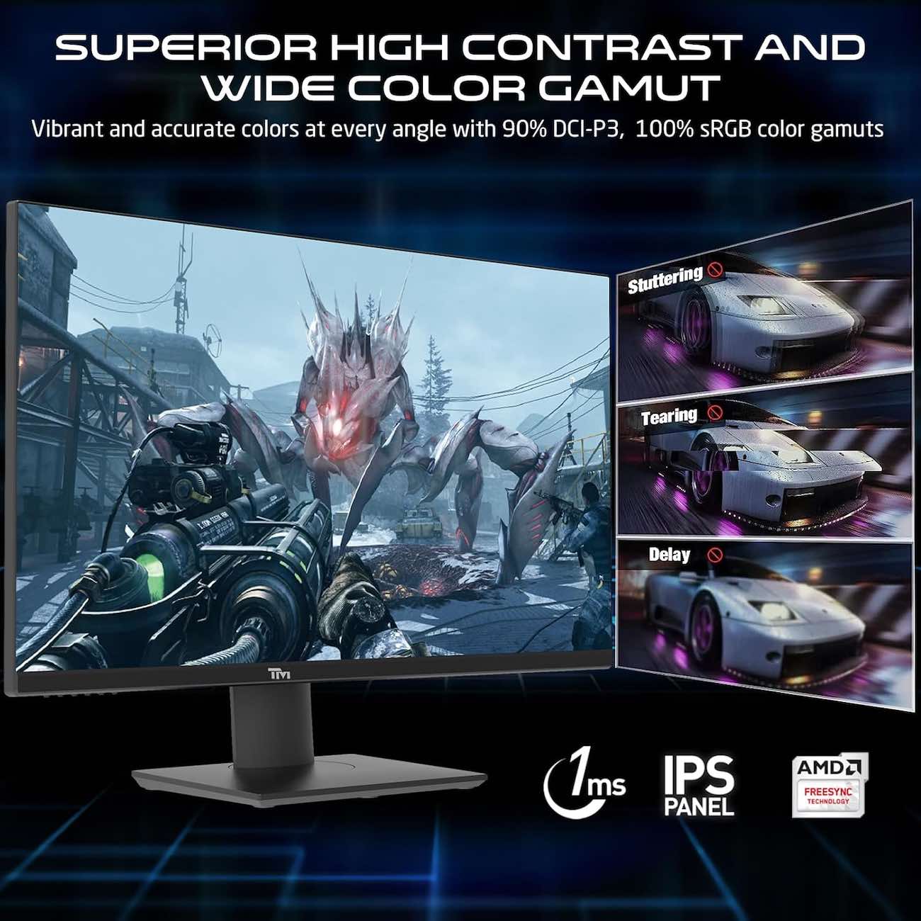 Fast response time of 0.9 milliseconds and a refresh rate of 144 Hz.