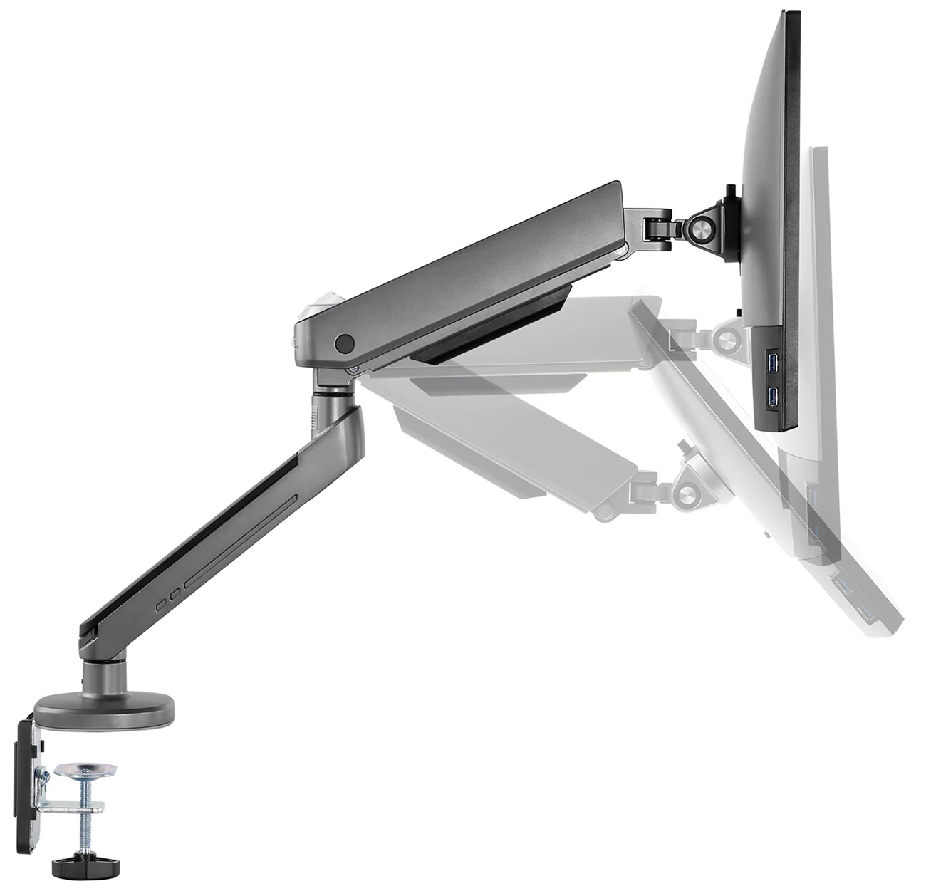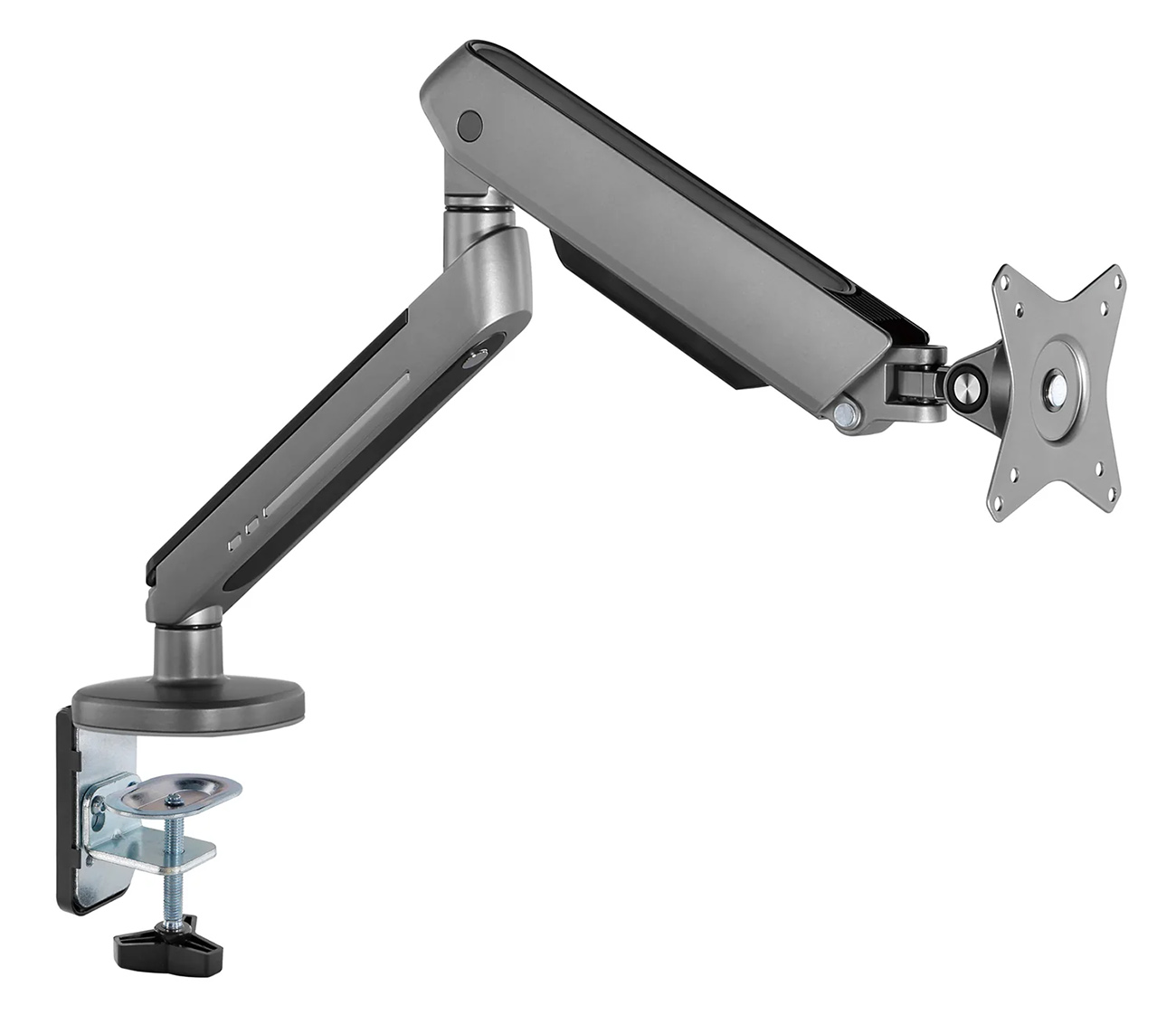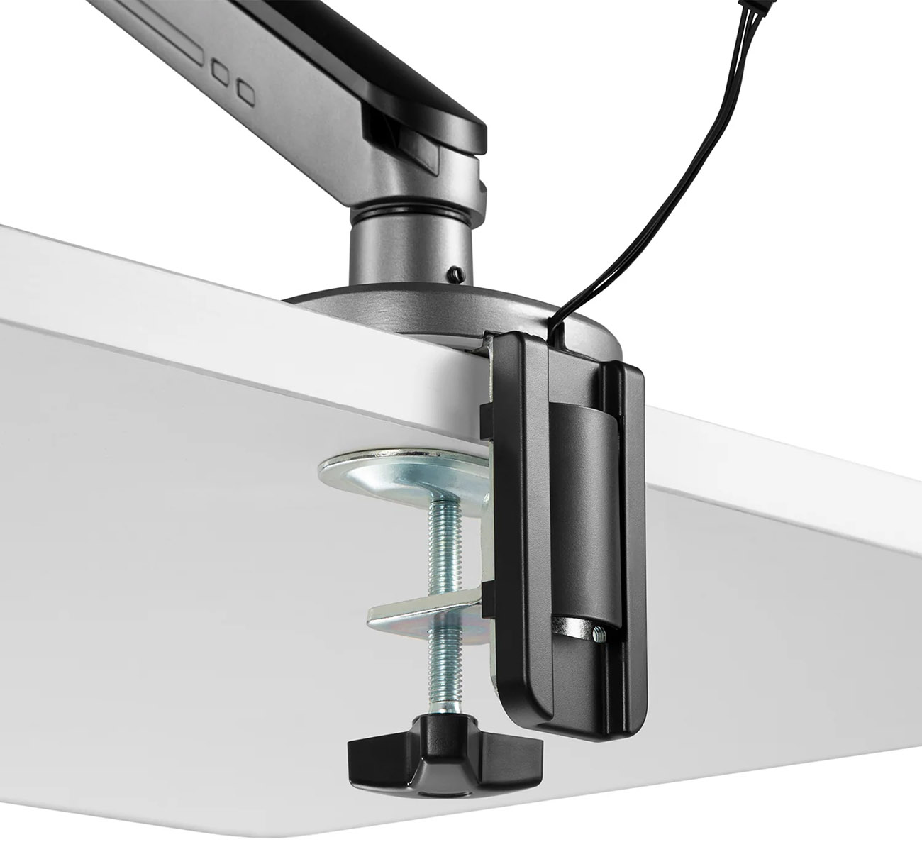 Flexible monitor stand that securely attaches the screen to the desk.