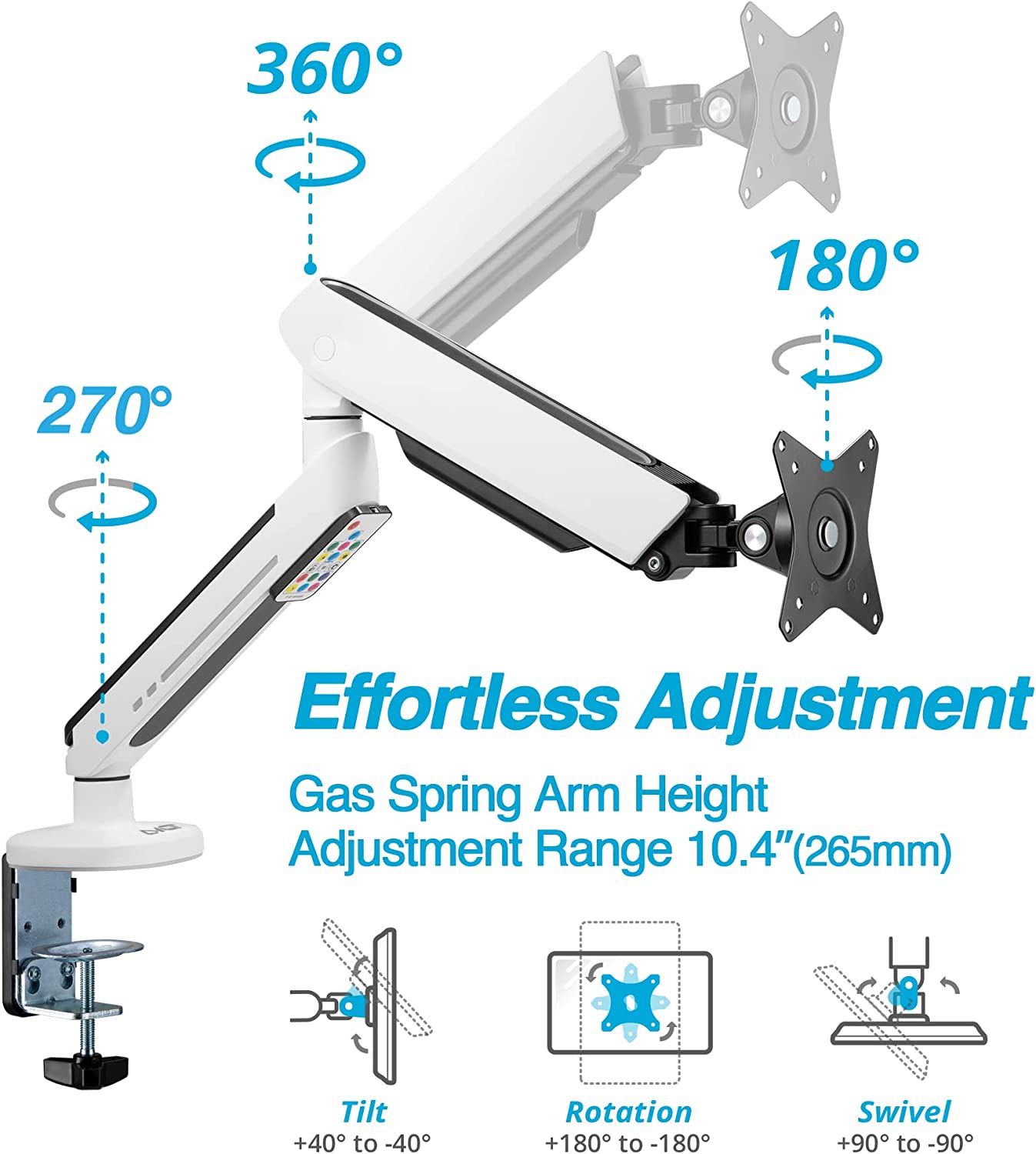 Suggested Desktop Thickness: Clamp:10~85mm Grommet:10~80mm (Clamp:0.39"~3.3" Grommet:0.39"~3.1")