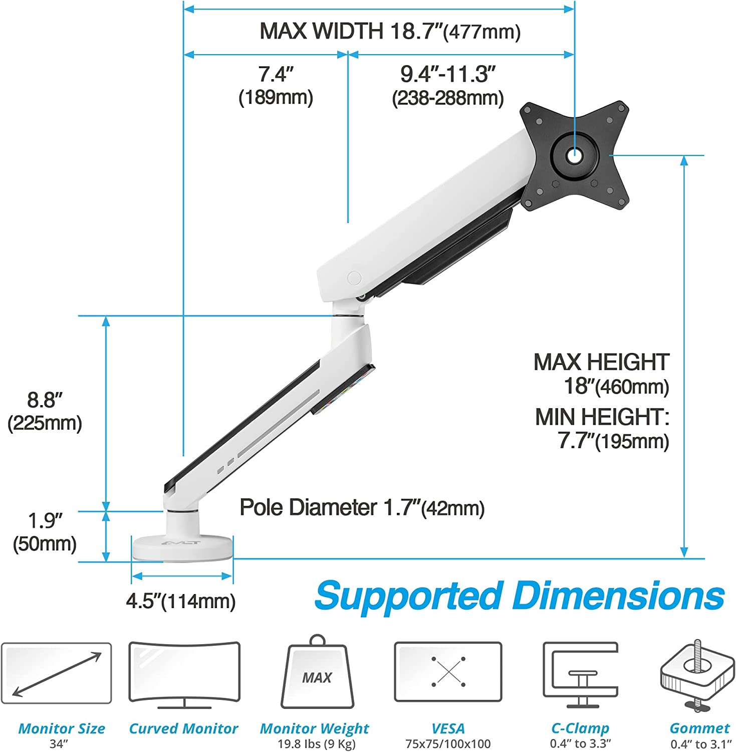 Arm Full Extension: 477mm (18.8")
