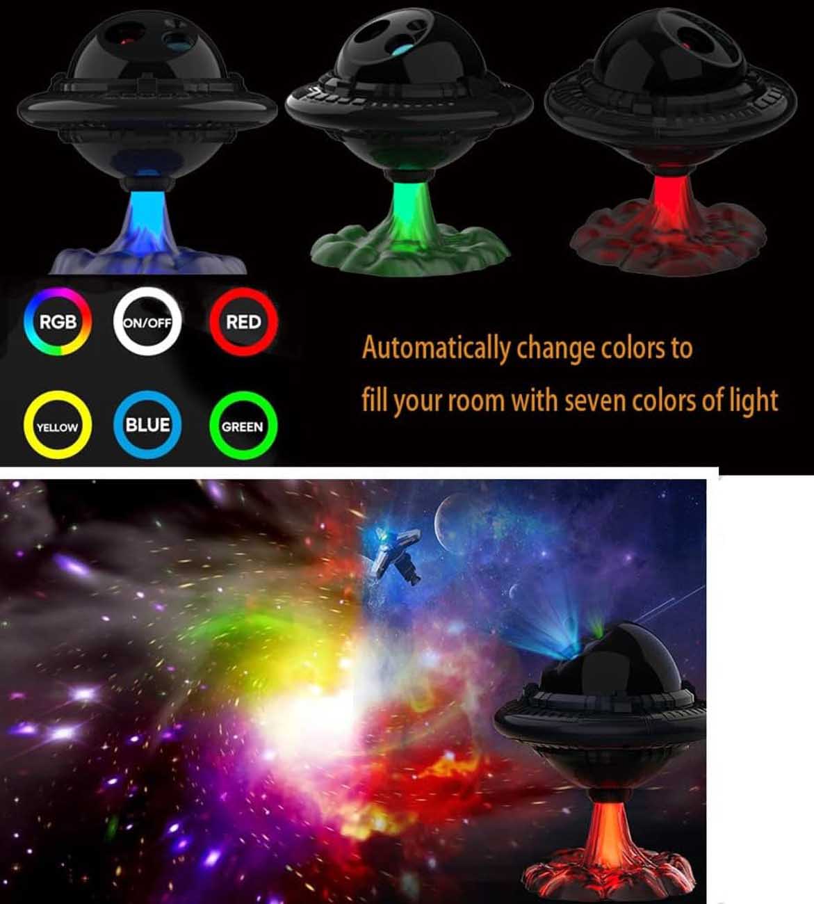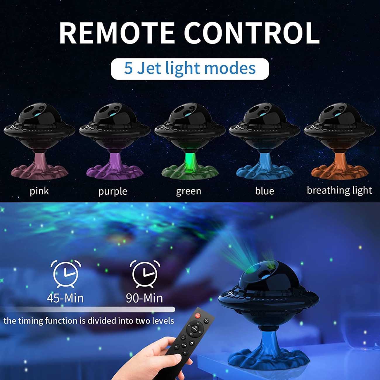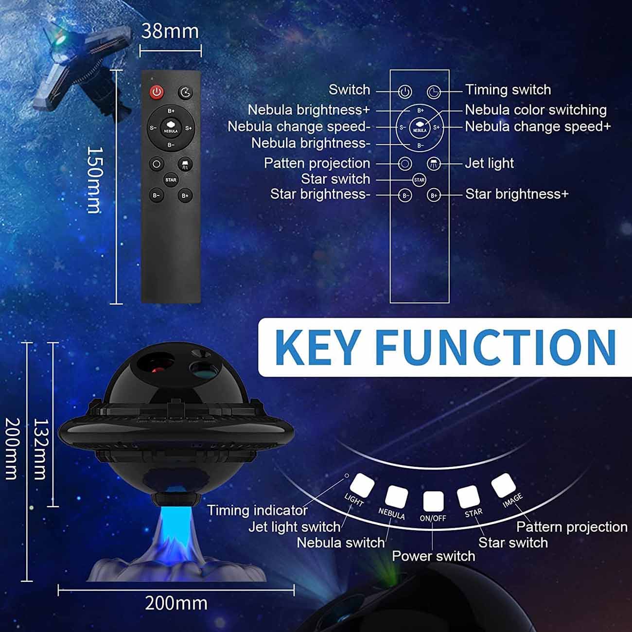Warp Gate Projector / Space Design / Alarm Clock / Night Light / Built-in Speaker / Remote Control