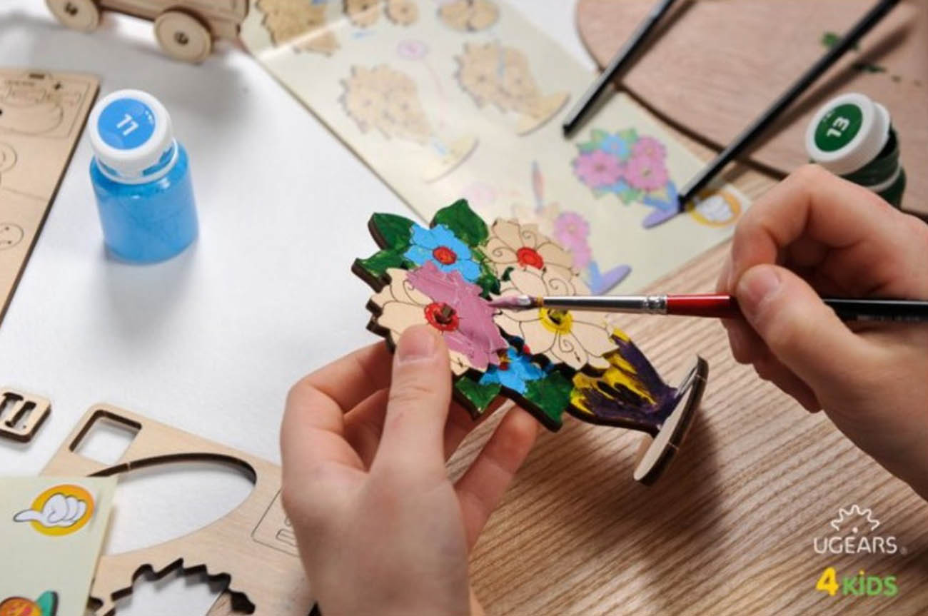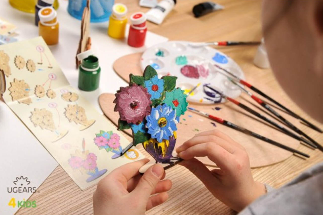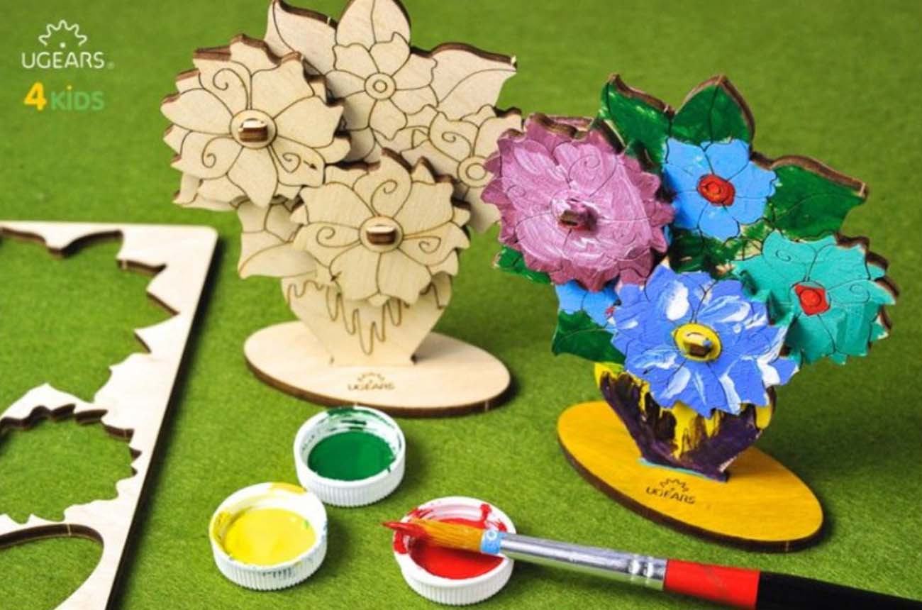 Is your child interested in puzzle games? We have provided you with this fun coloring model from Ugears. A 3D puzzle game designed in the shape of a bouquet of flowers.