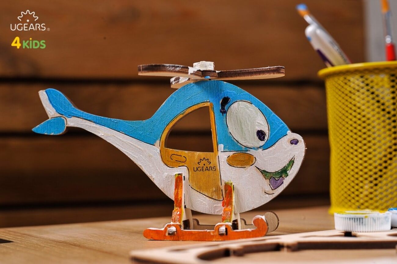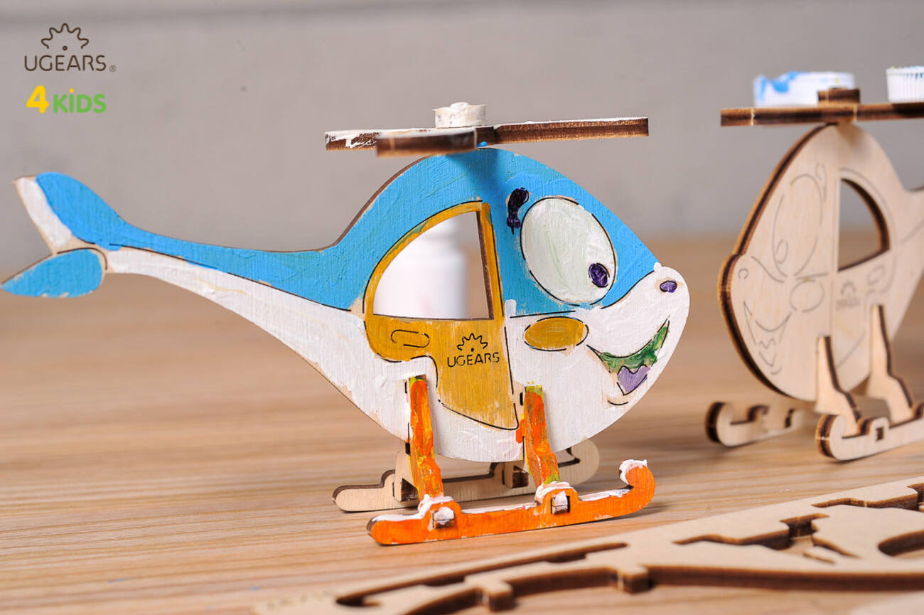 Is your child interested in puzzle games? We have provided you with this fun coloring model from Ugears. A 3D puzzle game designed in the shape of a helicopter.