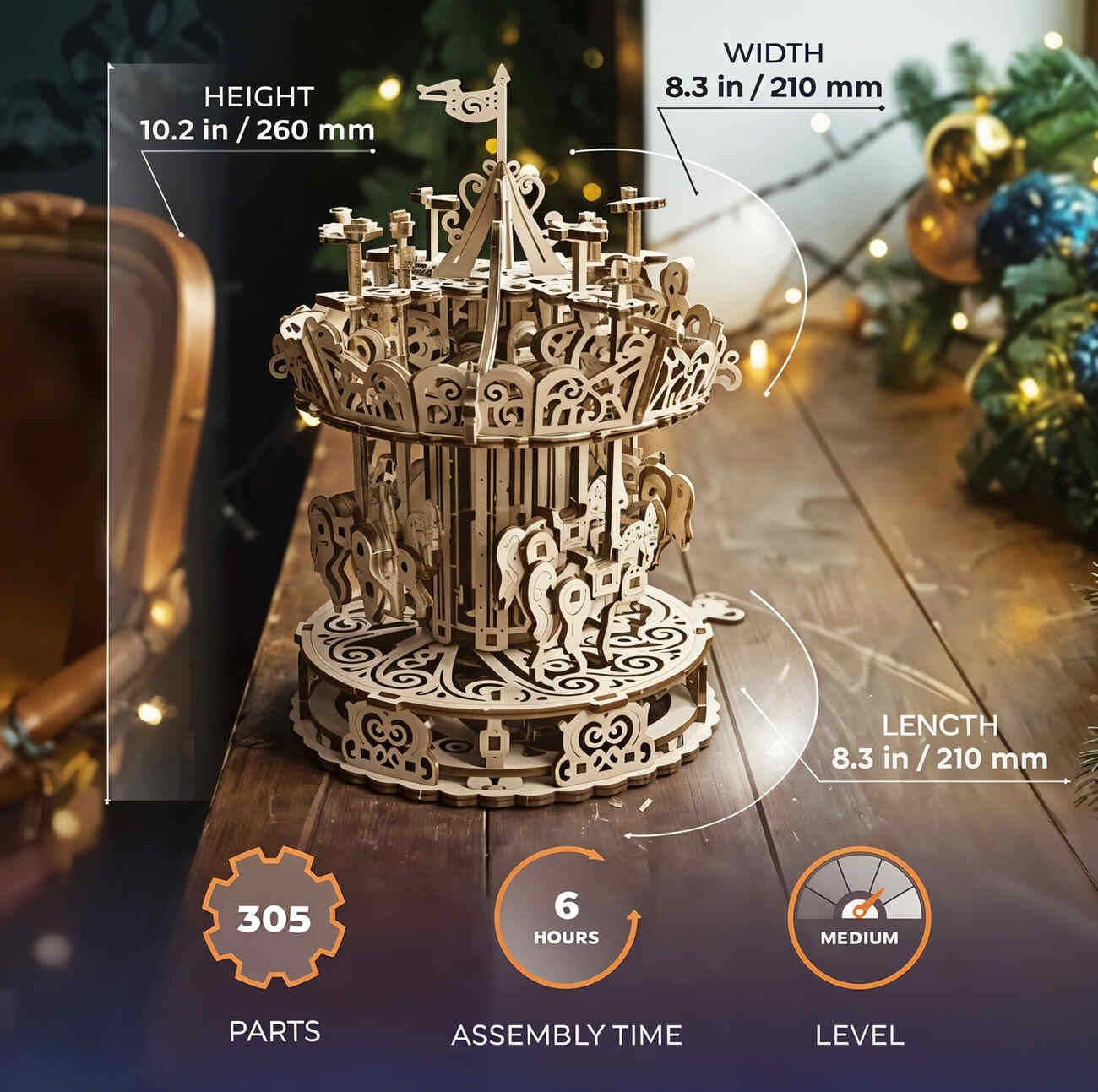 Interested in jigsaw and assembly games? We present this fun game from Ugears .. a mechanical model kit with a 3D design of a carousel.