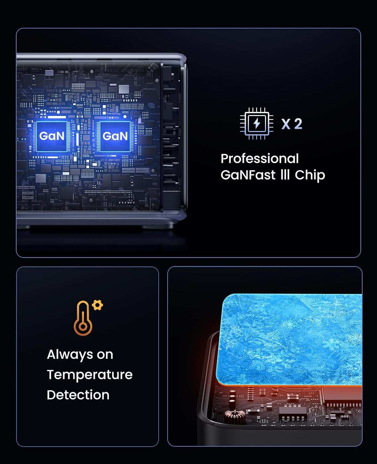 The charger utilizes GaN technology, providing powerful charging capabilities with a practical and compact size.