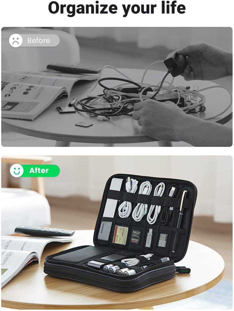 No Mess: UGREEN electronic accessories organizer has multiple pockets to meet your different needs. It prevents cables from being entangled. It is excellent storage for office and travel and keeps your important equipment within easy reach.