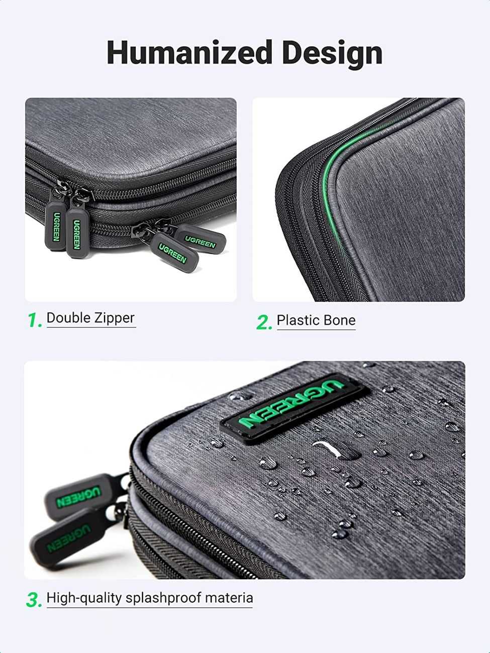Enhanced Durability with High Quality Material: With heavy-duty nylon shell and soft inner lining, UGREEN travel organizer provides excellent protection and organization from scratches, dust, impact and accidental drops. Smooth double zippers desgin for quick access and management.