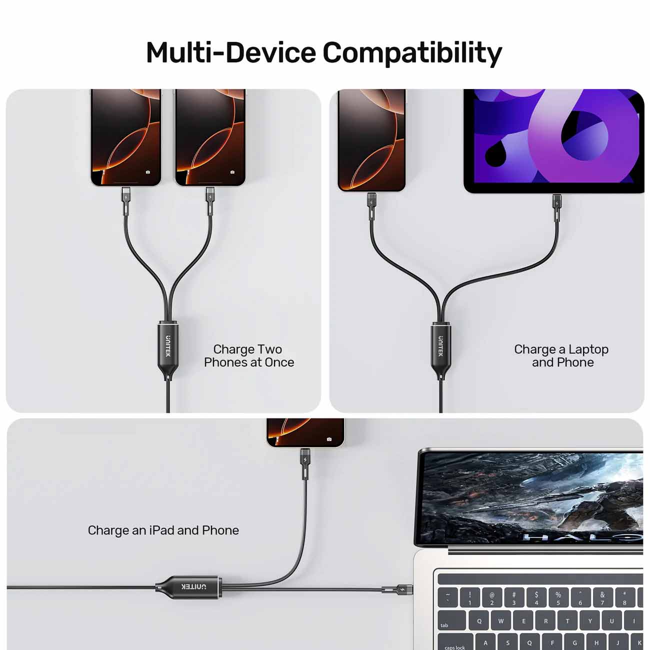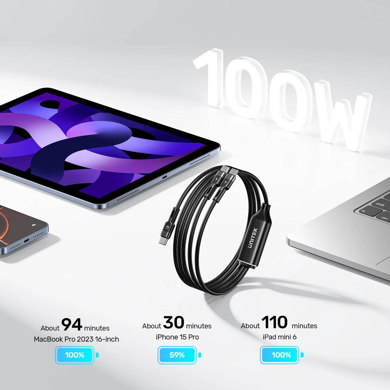 Unitek Type-C to Type-C Cable / Second Input With 90-Degree Angle / 100W Power / 1 Meter