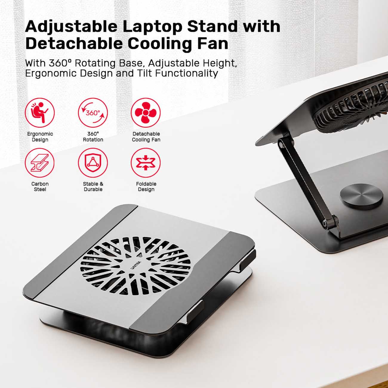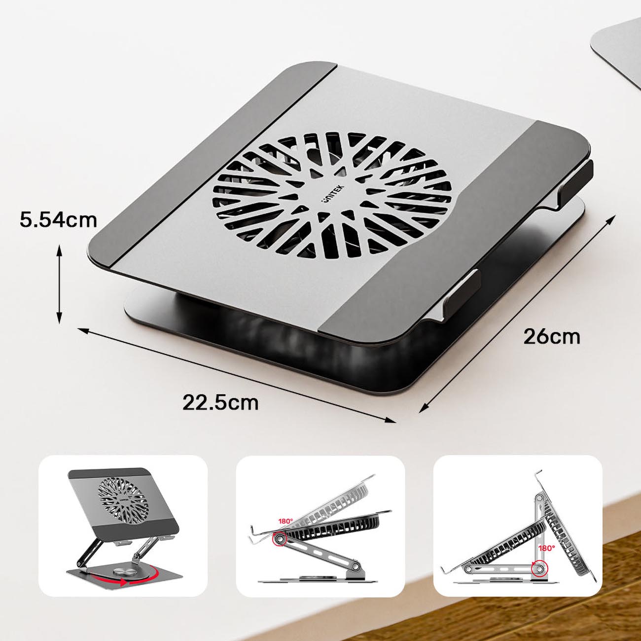 Unitek Aluminum Laptop Stand / Supports up to 4.4 kg / 360 Degree Rotatable