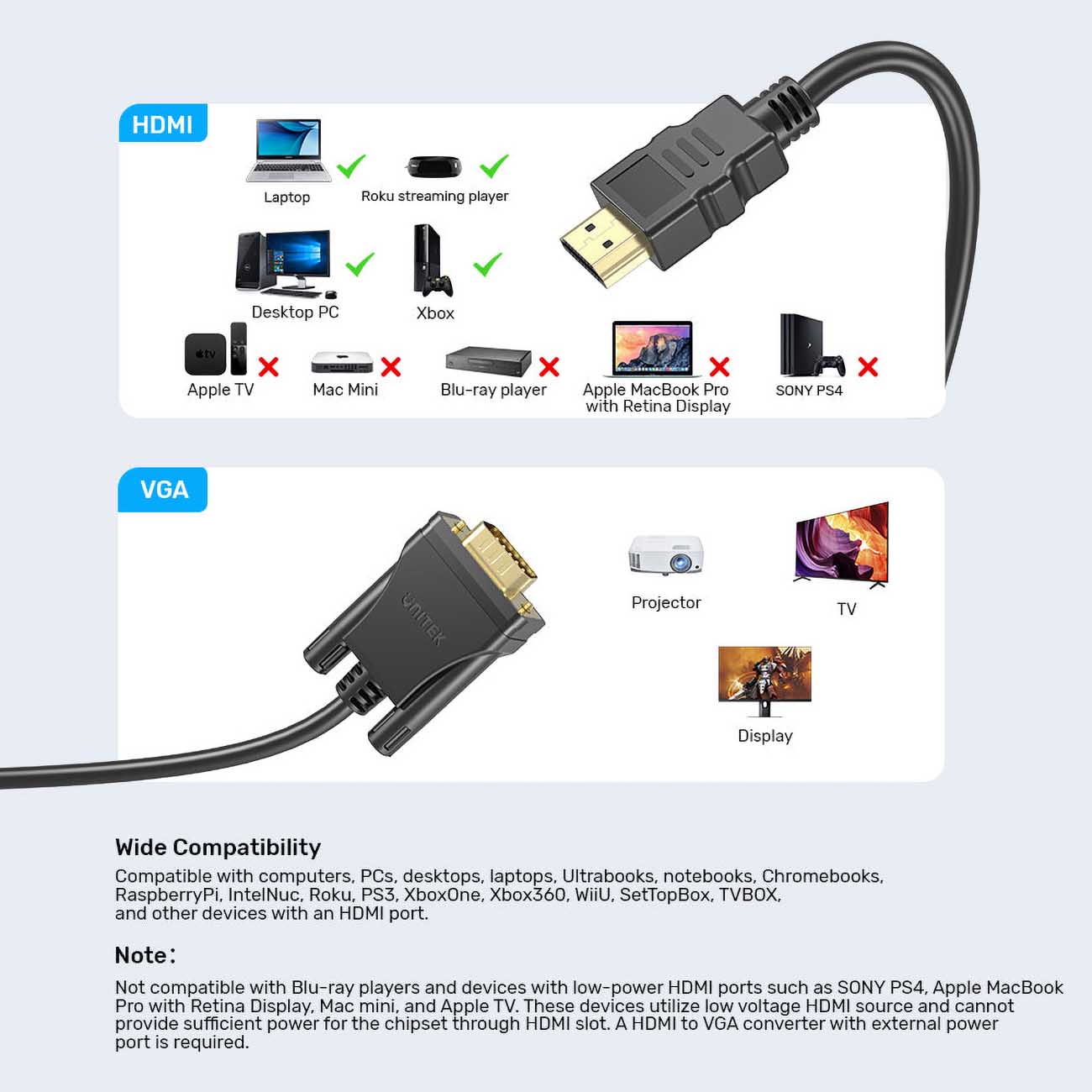 Unitek Adapter / Convert HDMI to VGA / 1080p Resolution / With Audio & Micro USB Ports