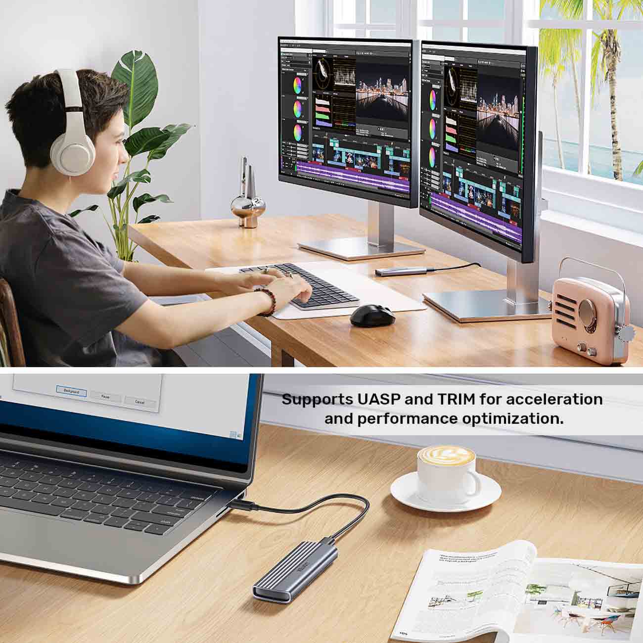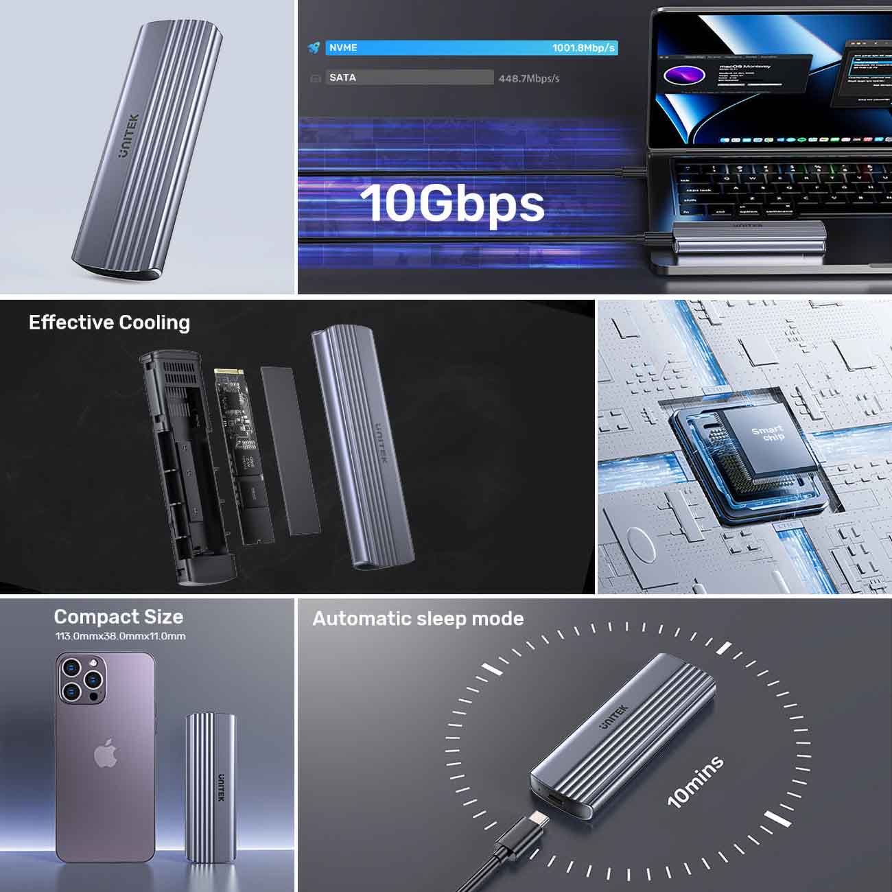Unitek Dual NVMe & SATA Drive Enclosure / 10Gbps Speed / With Built-in Cooling