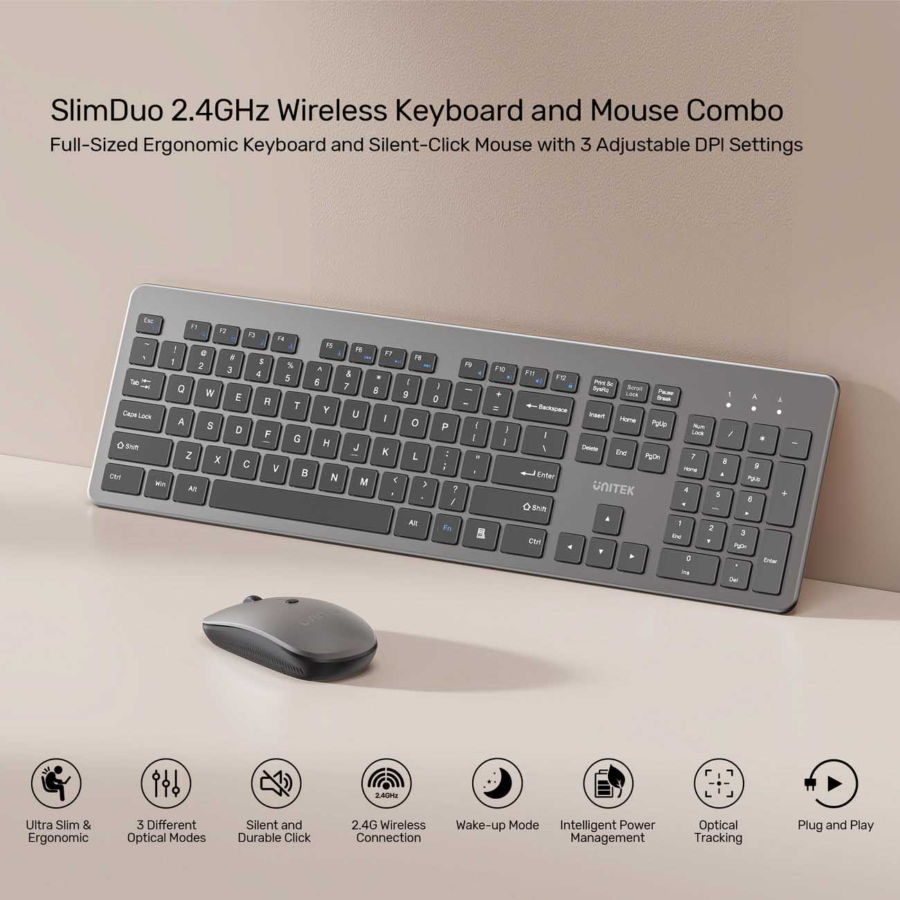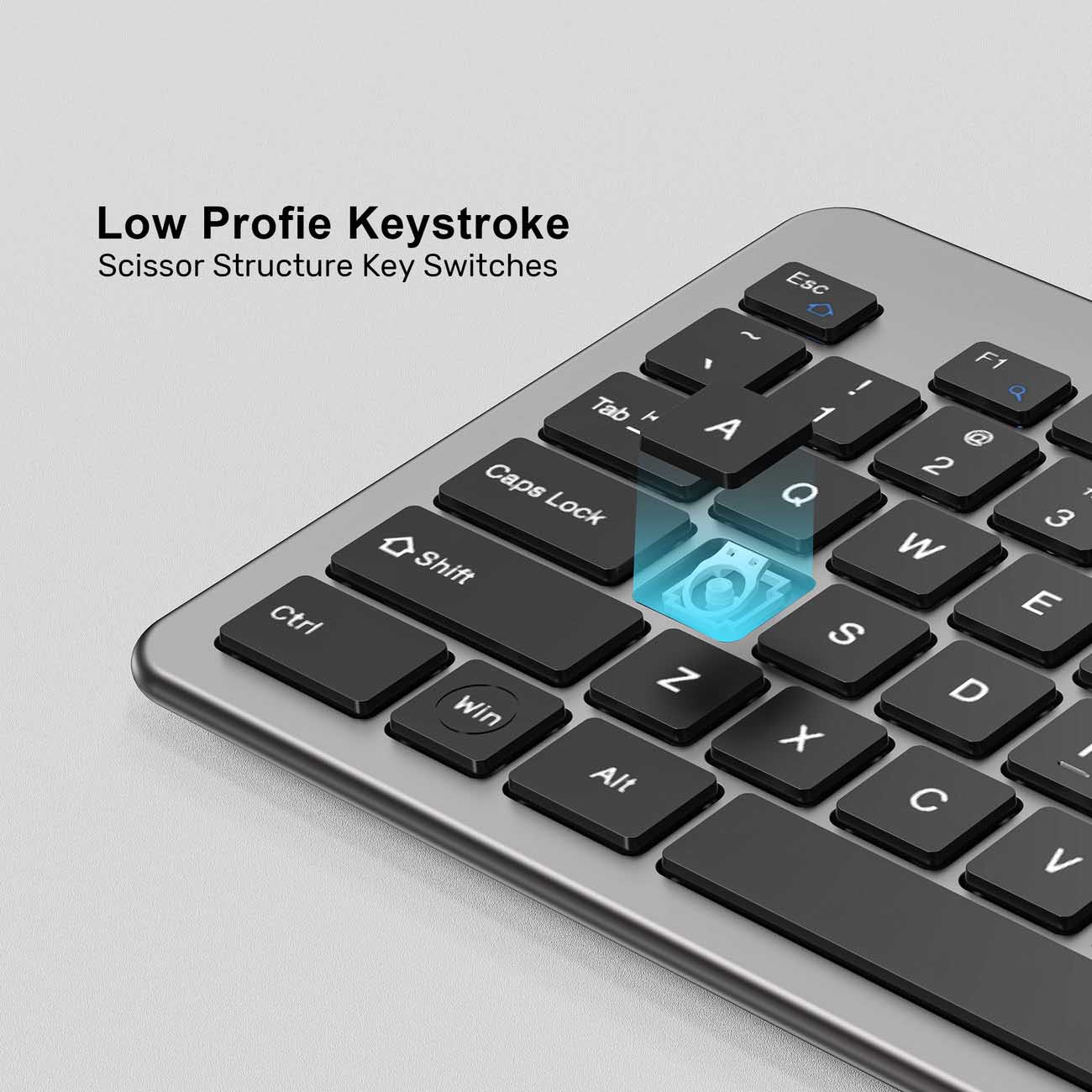 Low battery alert via a red LED indicator on both the mouse and keyboard.