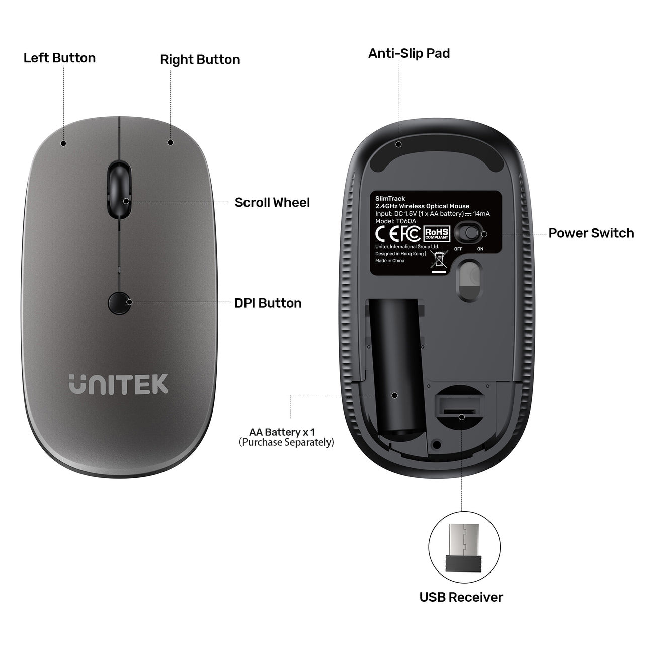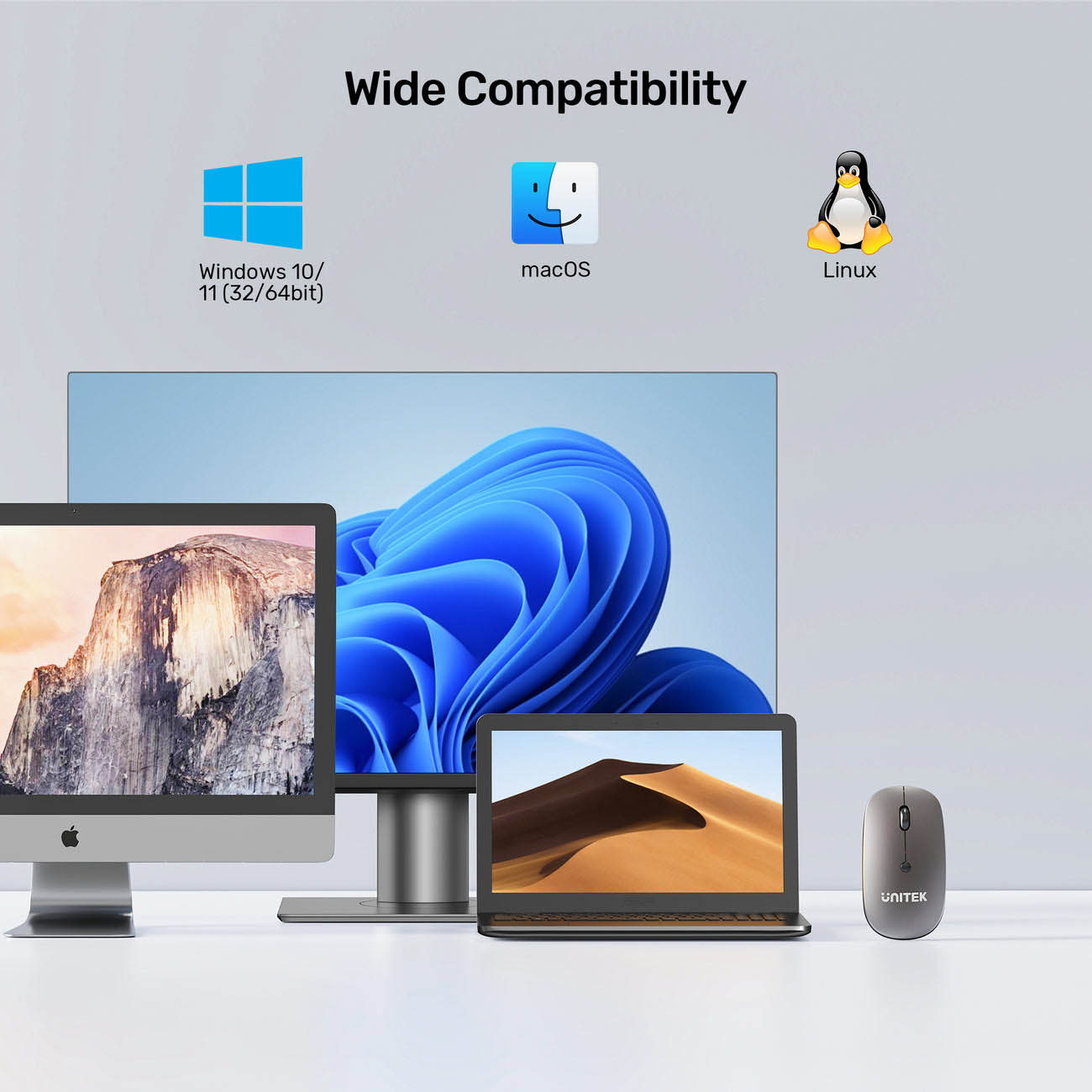 Unitek Wireless Keyboard & Mouse / Adjustable 1600 DPI Sensor / Quiet Operation / 10m Working Range
