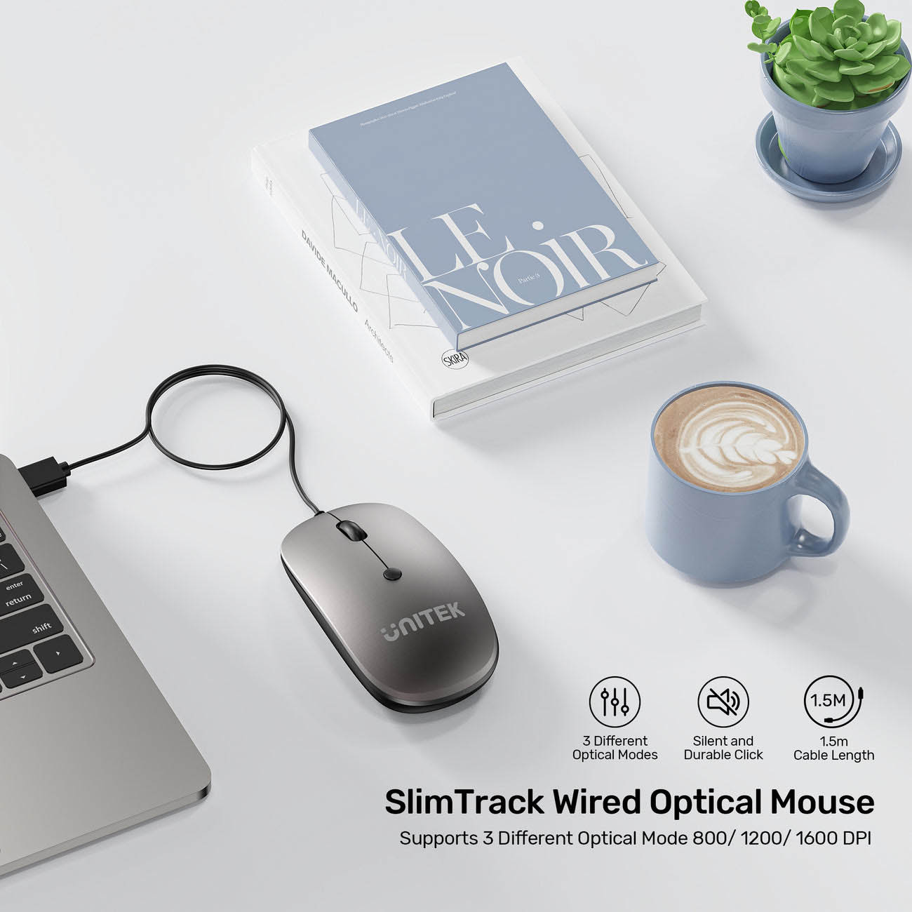 Unitek SlimTrack Wireless Mouse / Battery-Powered / Adjustable 1600 DPI / Practical Design