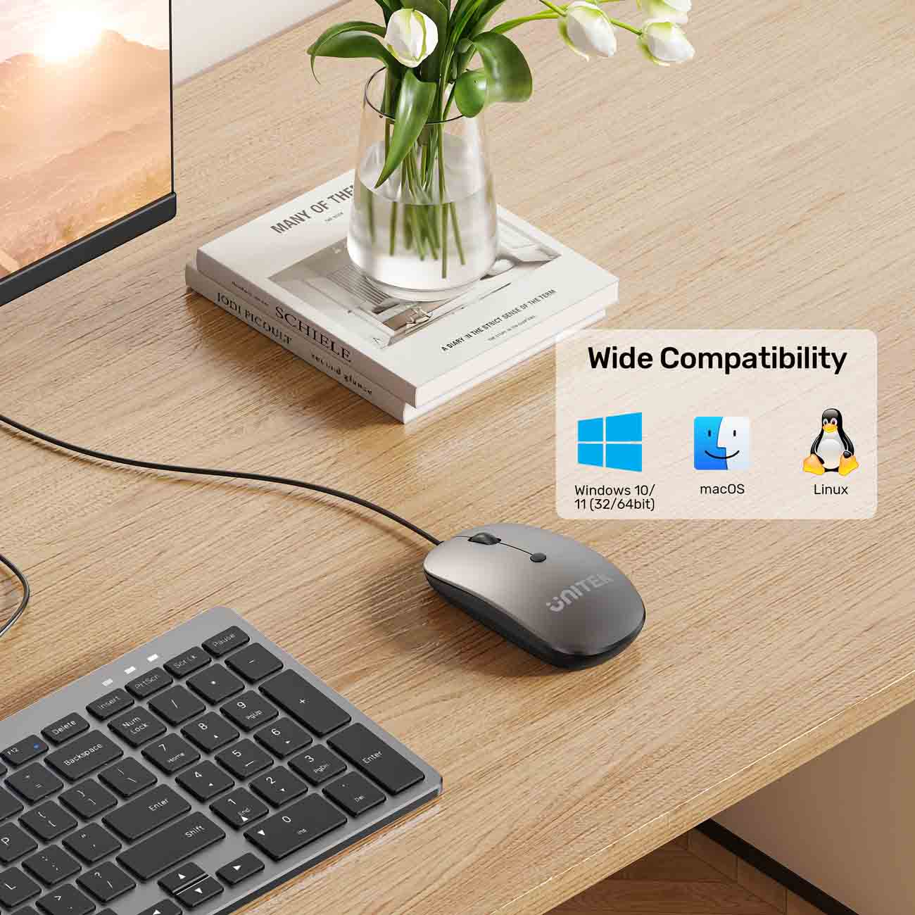 Unitek SlimTap Wired Keyboard / Slim Design / Supports Windows & Mac / English Letters
