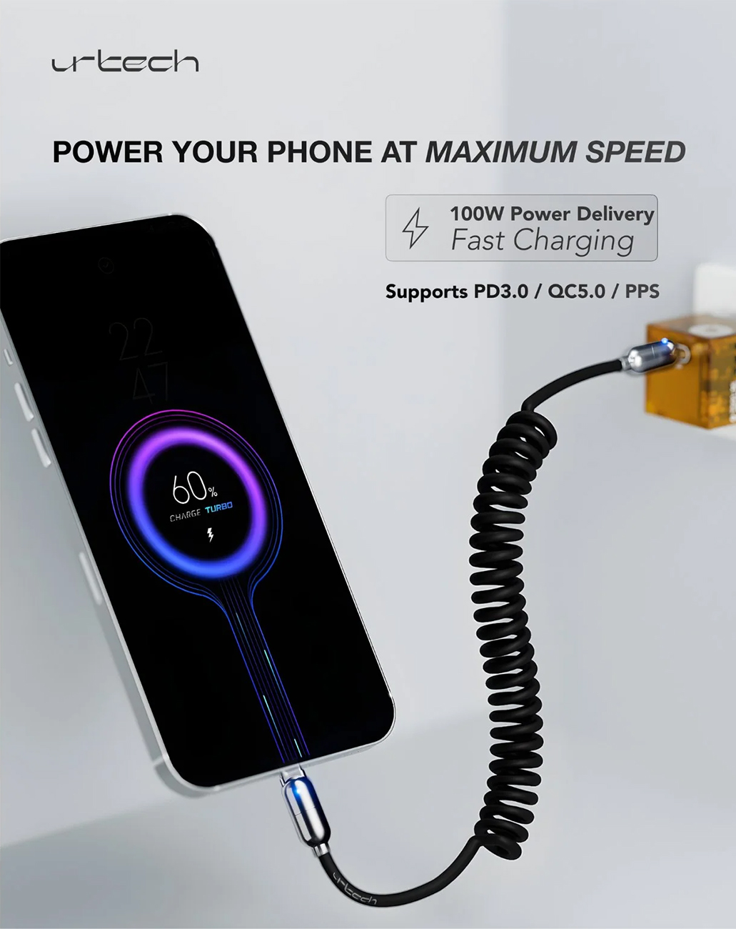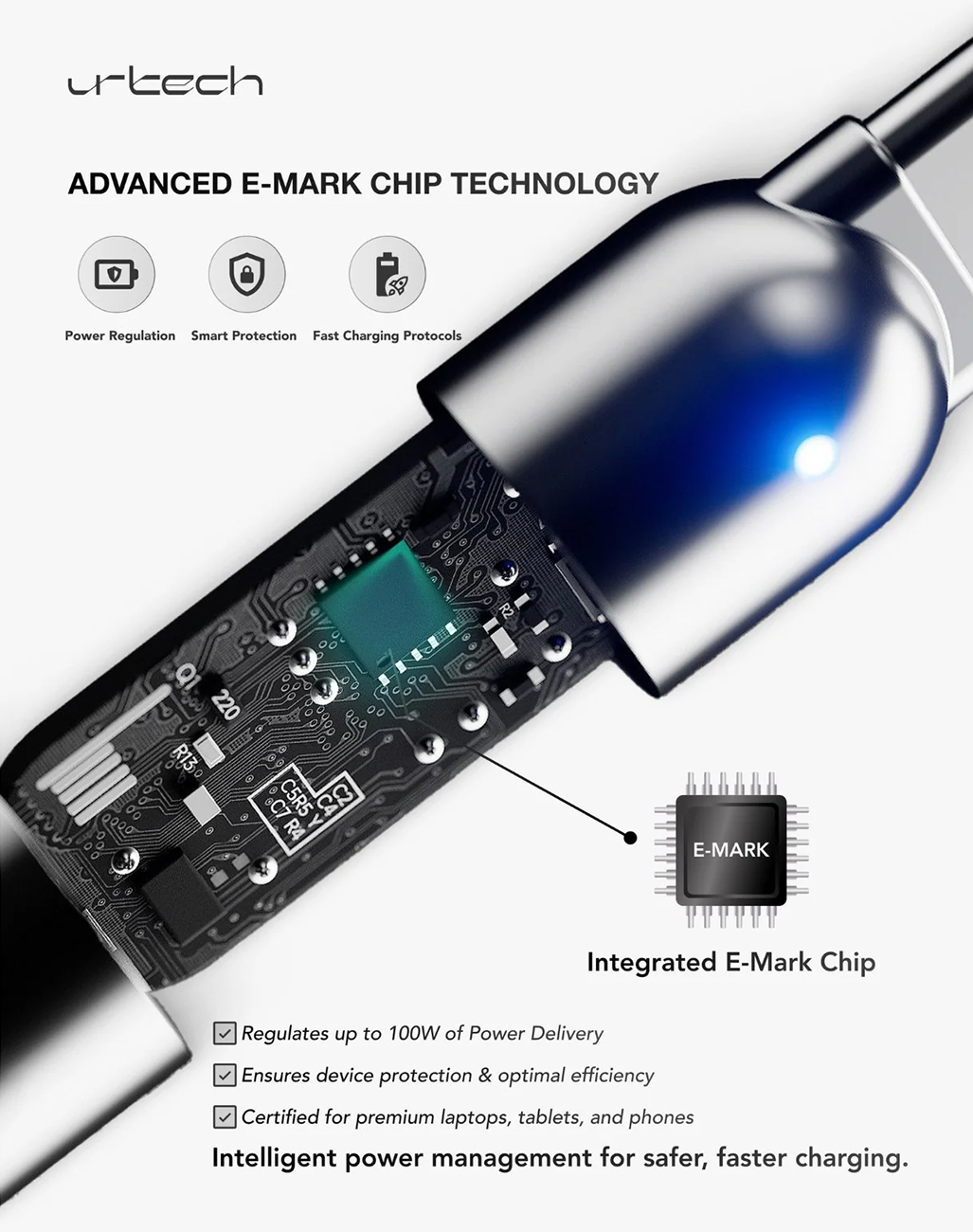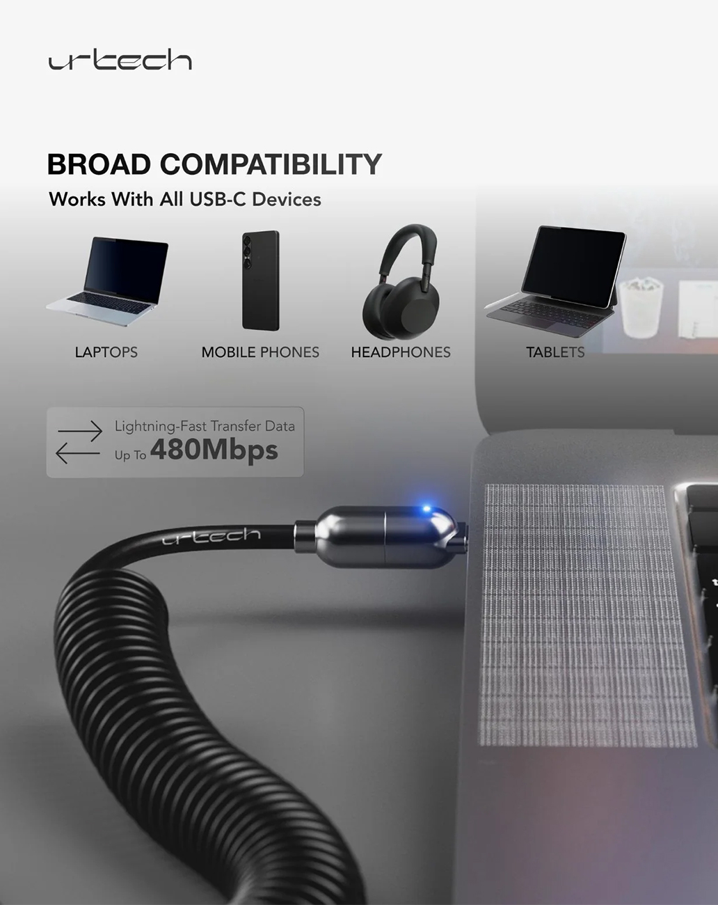 Urtech USB-C to USB-C Cable / 100W Power / Fast Charging Support / 1 Meter