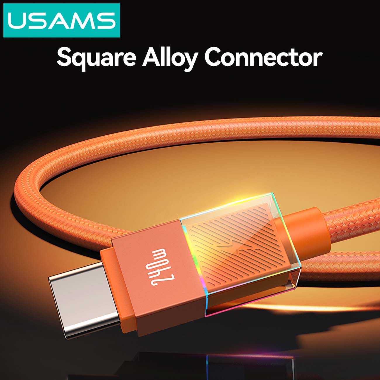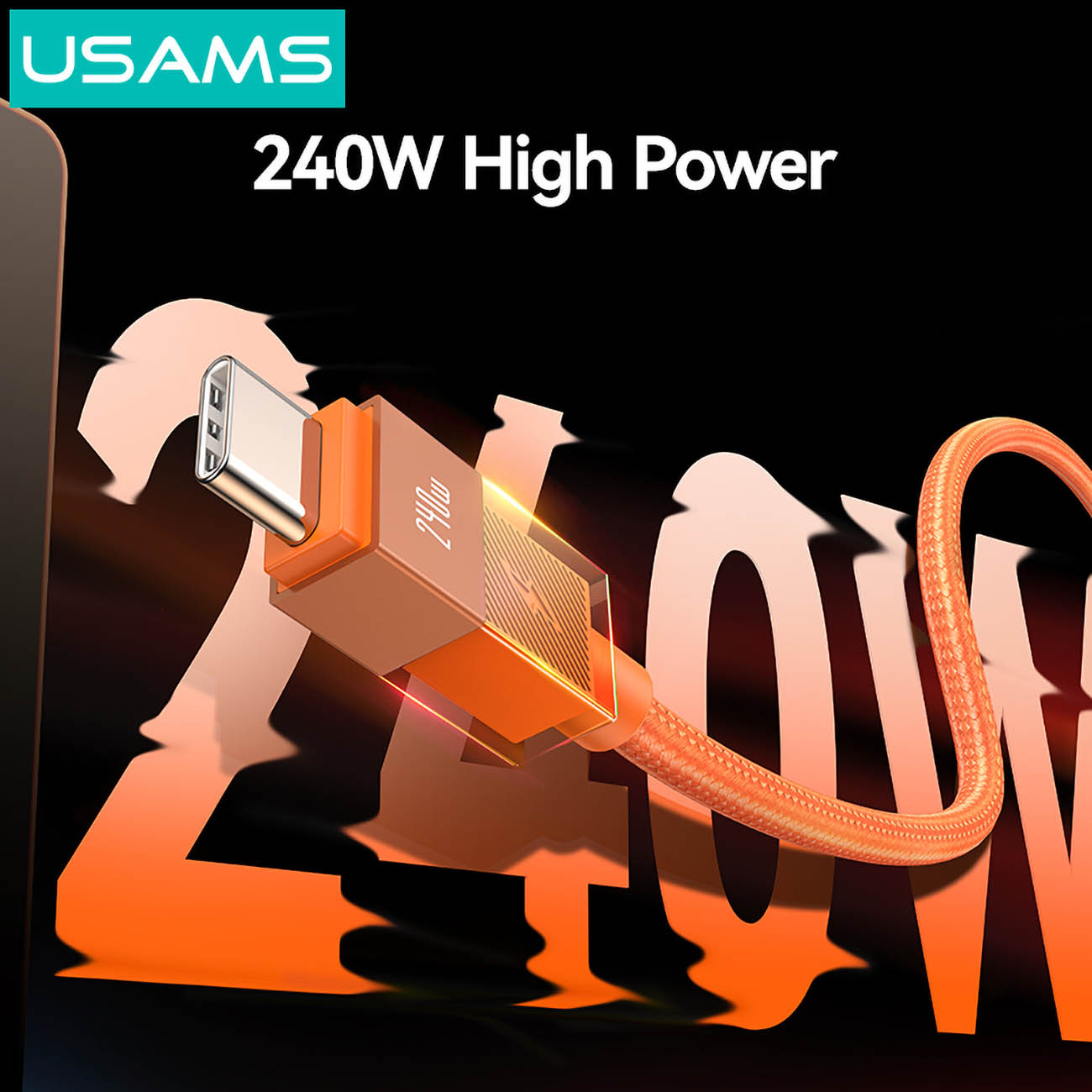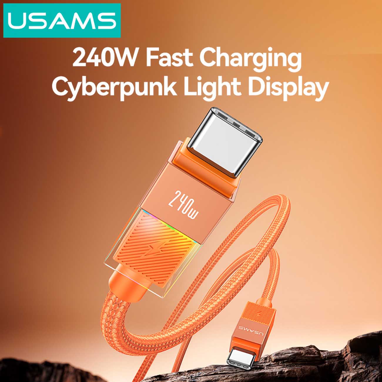 Usams Type-C to Type-C Cable / 240W Power / Built-in Light / 1.2m Length / Black