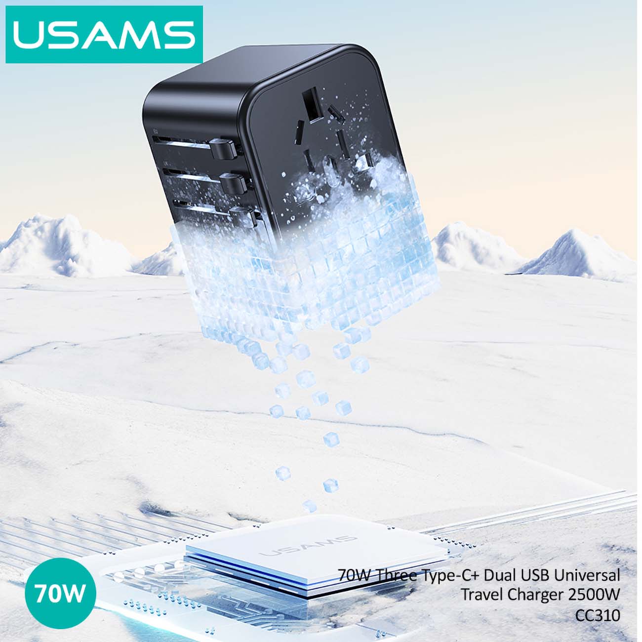 WiWU Travel Plug Adapter / 3 USB + 1 Type-C Port / Universal Plugs / 45W Power