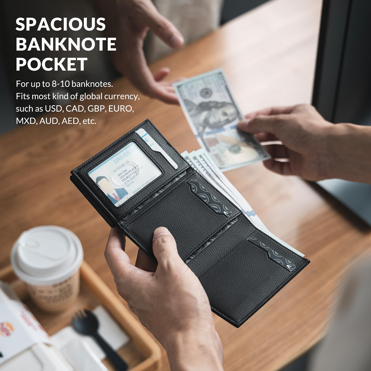 VULKIT Card Holder / RFID Protection / Holds 1 to 6 Cards / Black