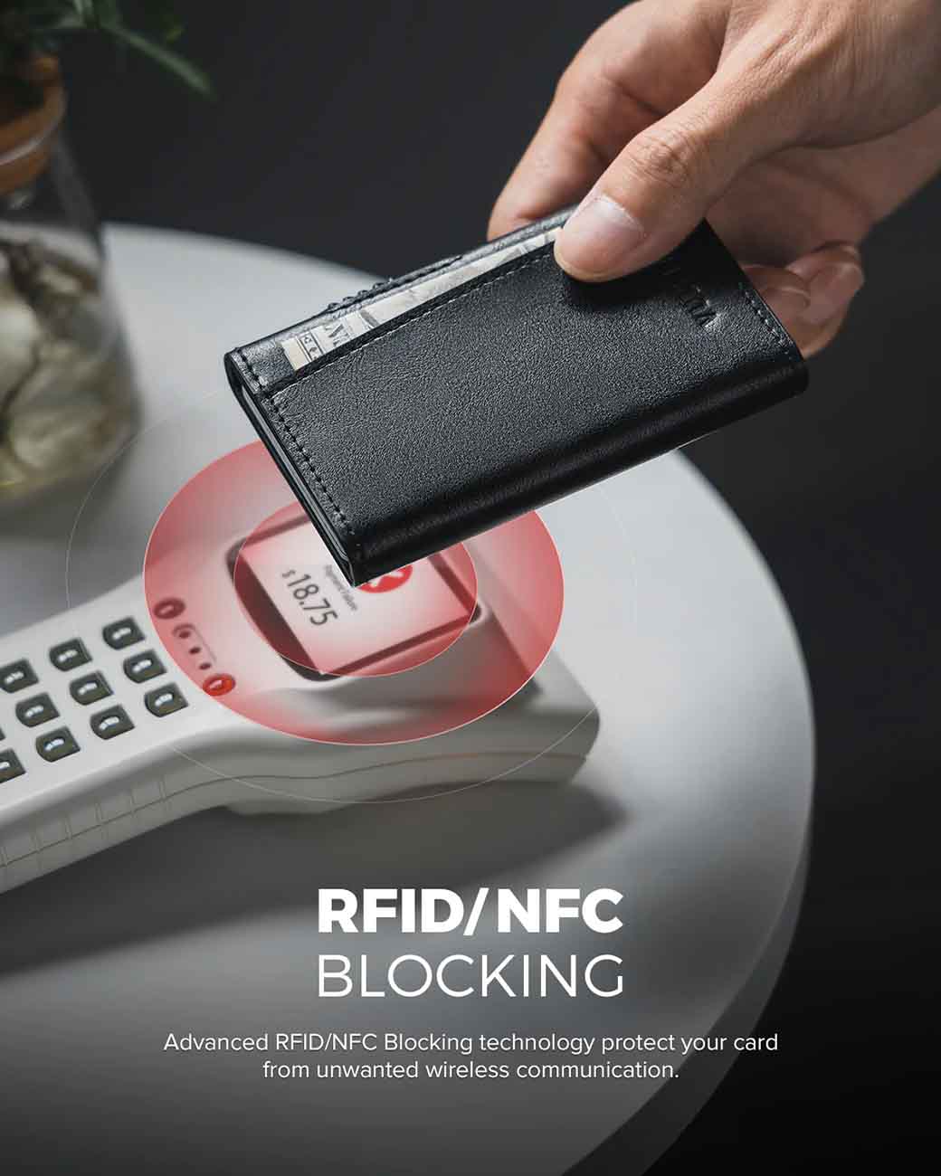 VULKIT Card Holder / RFID Protection / Holds 1 to 6 Cards / Black