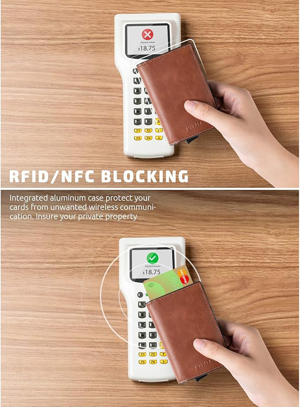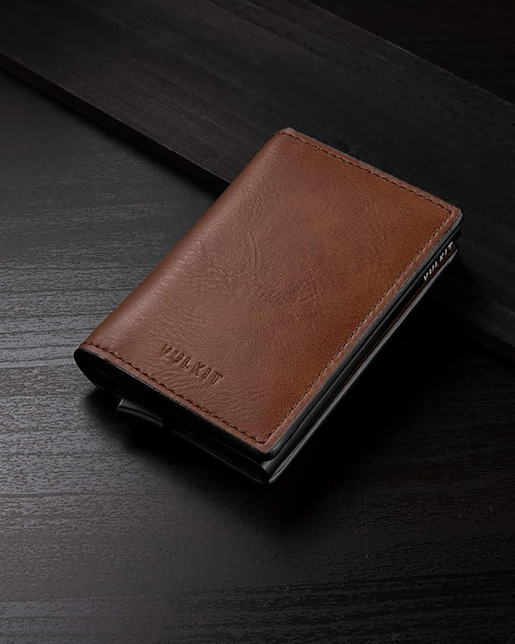 VULKIT Card Holder / RFID Protection / Holds 1 to 6 Cards / Brown